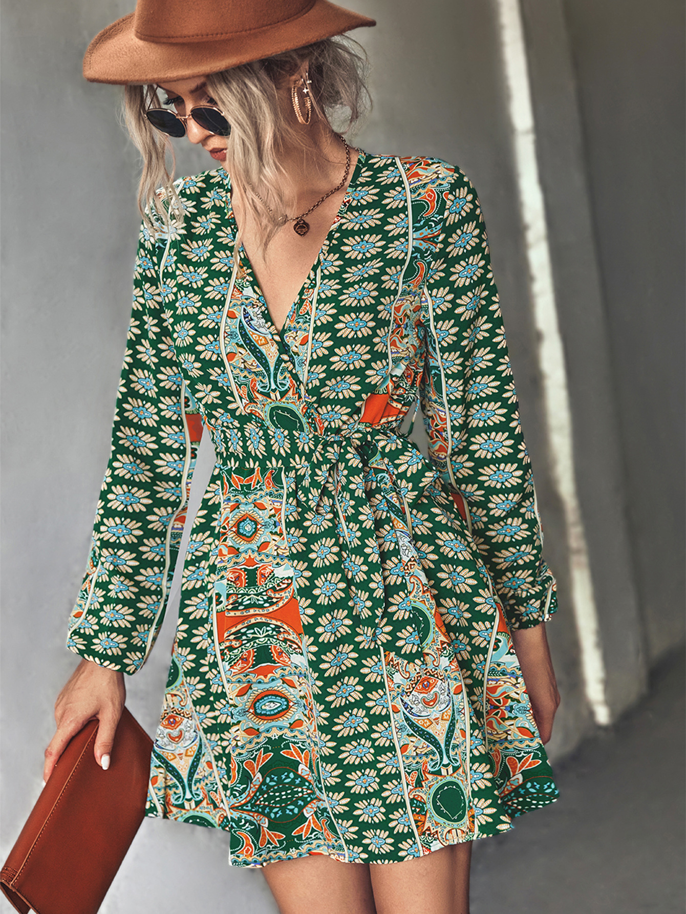 Be the first to review “Popular Women Clothing V neck Printed Dress”