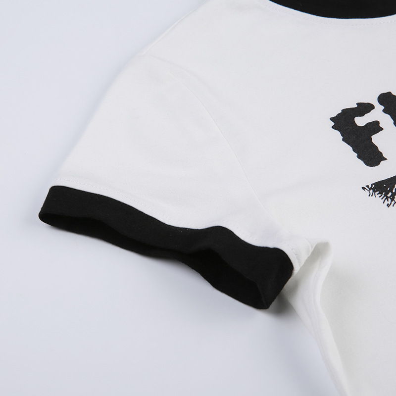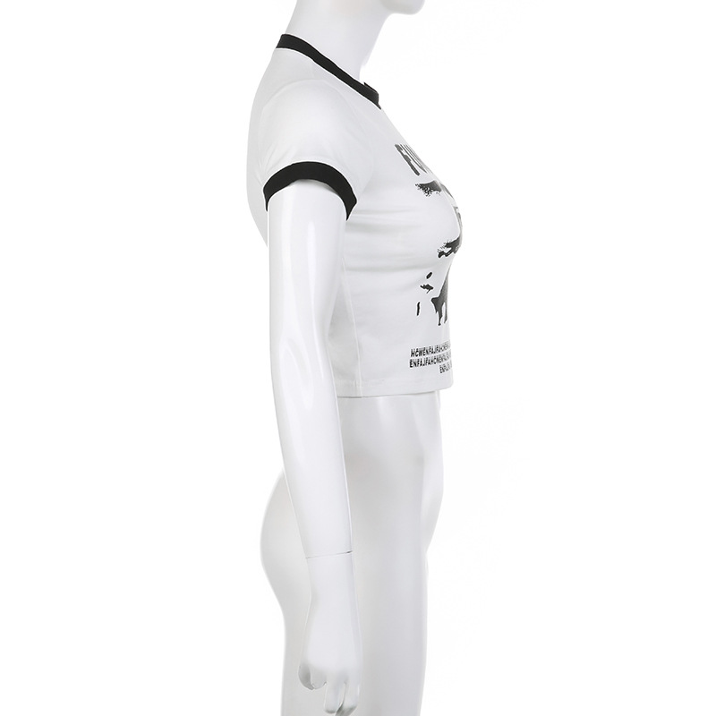 Summer Sexy Hipster Street Retro round Neck Raglan Contrast Color Wings Printing Short Sleeve T shirt