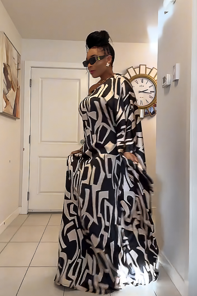 Printed Lace-Up One Shoulder Straight Maxi Dress