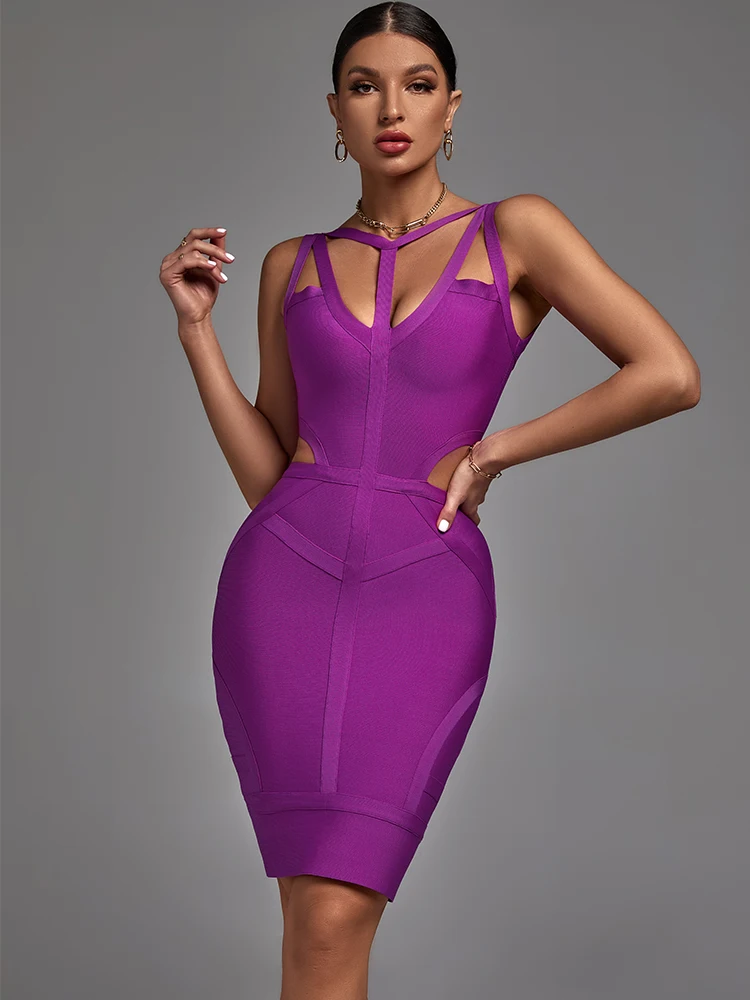 Purple Spaghetti Strap Cut-Out Bodycon Dress