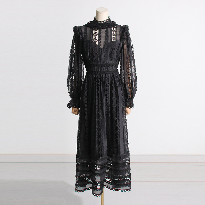 Retro Bohemian Mesh Hollow Out Stand Collar Dress