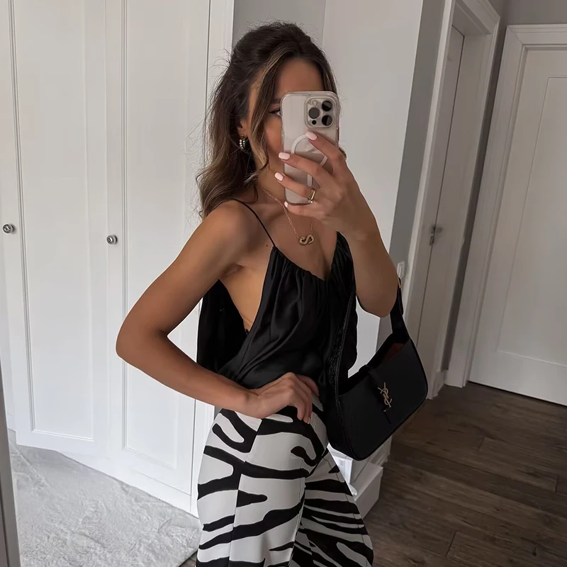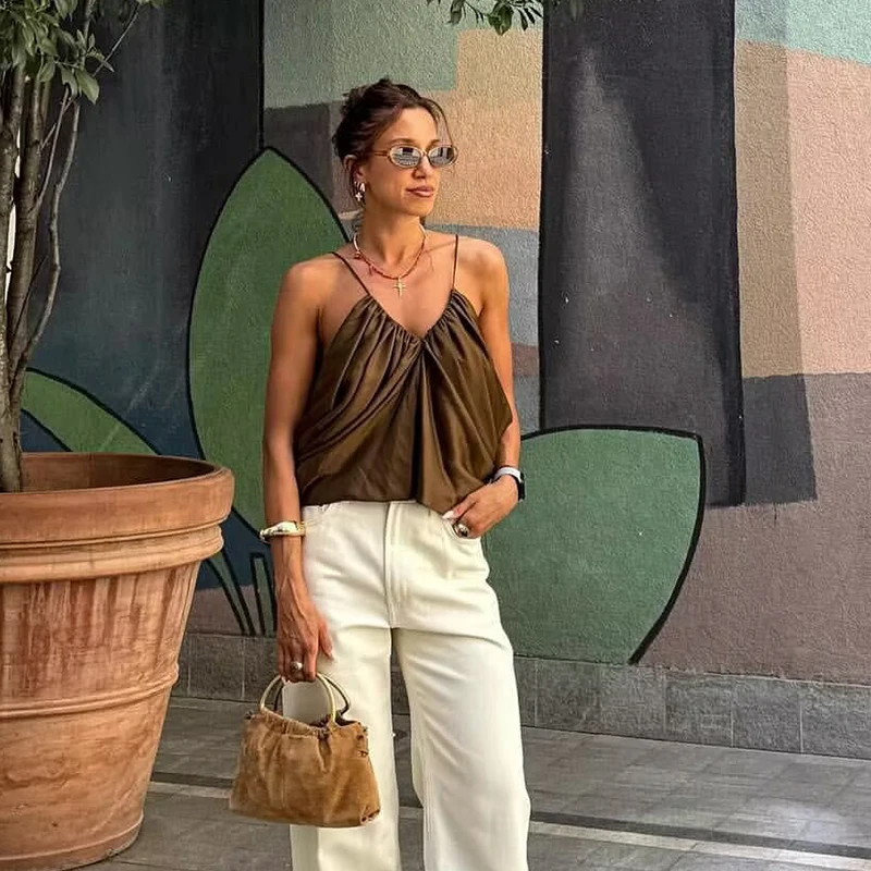 Satin V-Neck Sleeveless Slip Top for Women