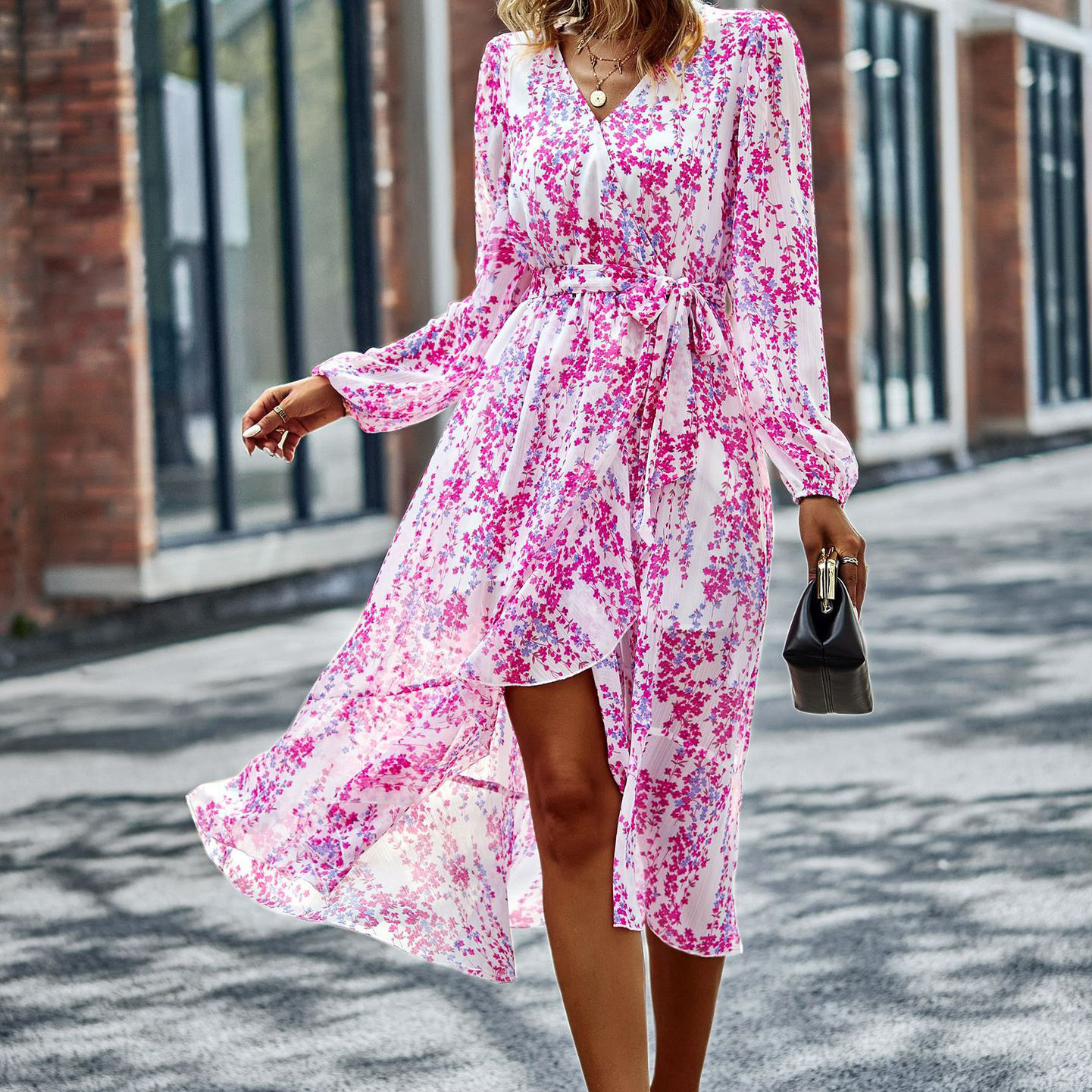 Self-Designed Floral Dress – Spring Autumn Fit