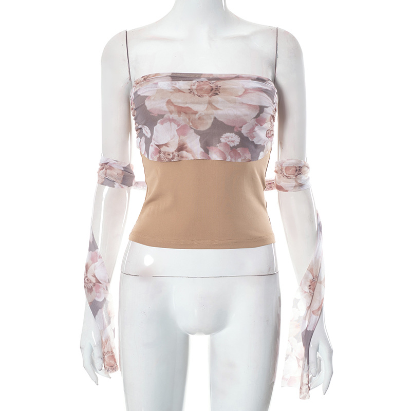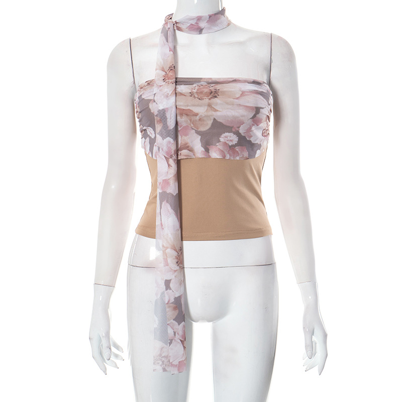 Sexy Niche Tie Dye Design Printing Color Contrast Patchwork Bandeau One Shoulder Vest Women Summer