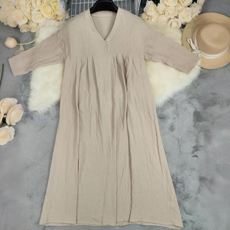 Simple Solid Color V-Neck Casual Dress
