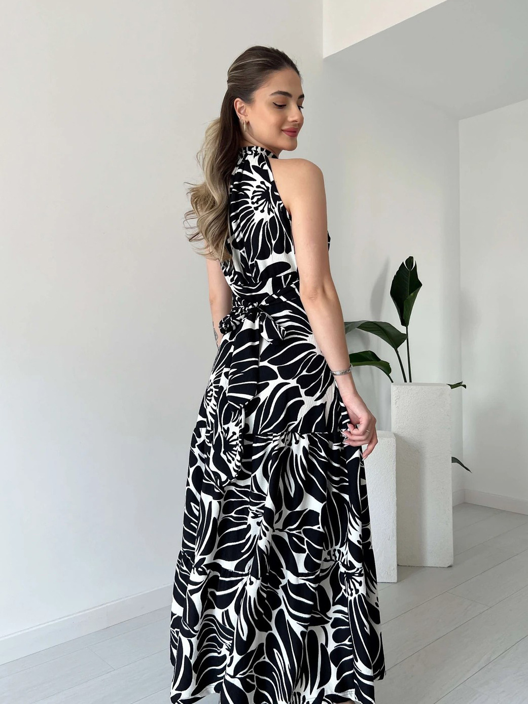 Sleeveless Printed Maxi Dress with High Slit