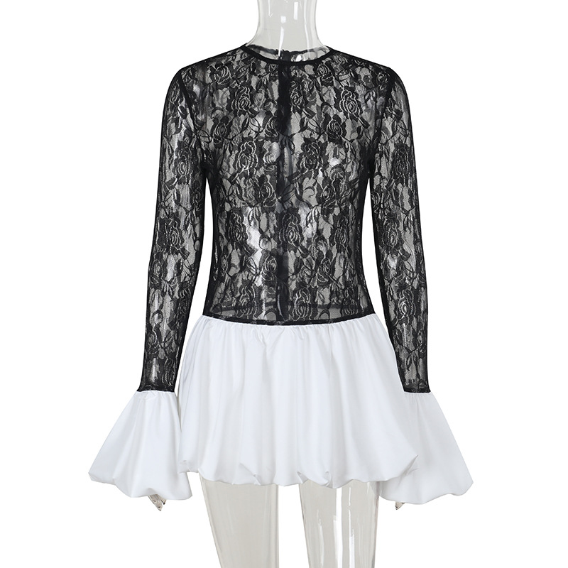 Element: Lace/Tulle/Fishnet,Zipper,Patchwork,Ruched