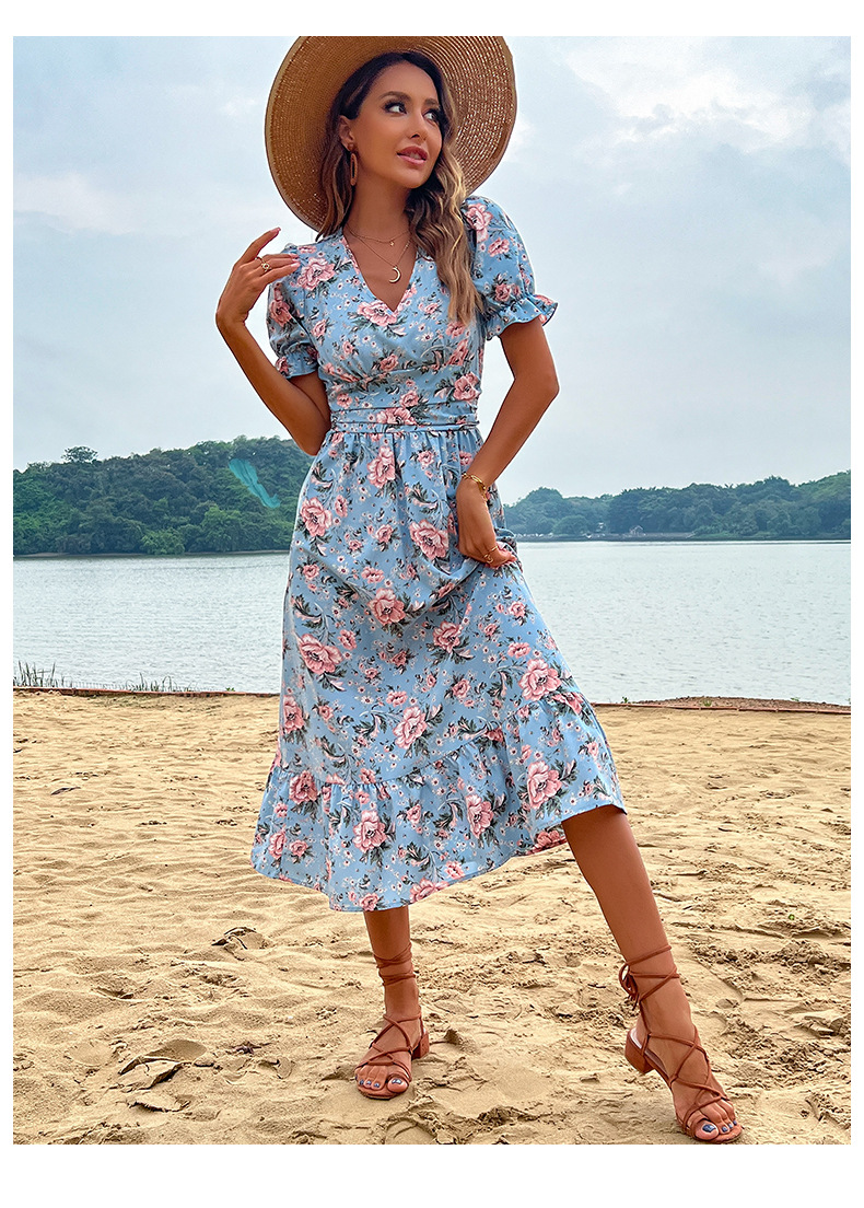 Slimming Blue Summer Seaside Holiday Dress