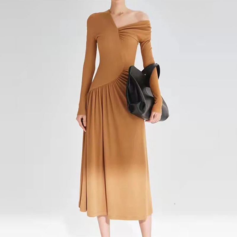 Slimming V-Neck Asymmetric Pleated Maxi Dress