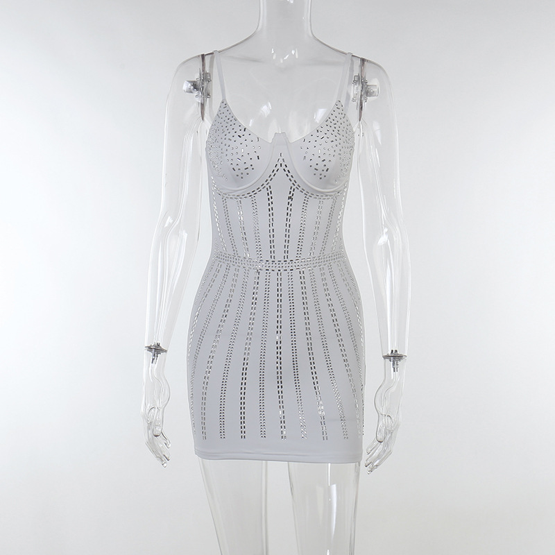 Sling Rhinestone Slim- Fit Sexy Sheath Sexy Casual Short Dress for Women