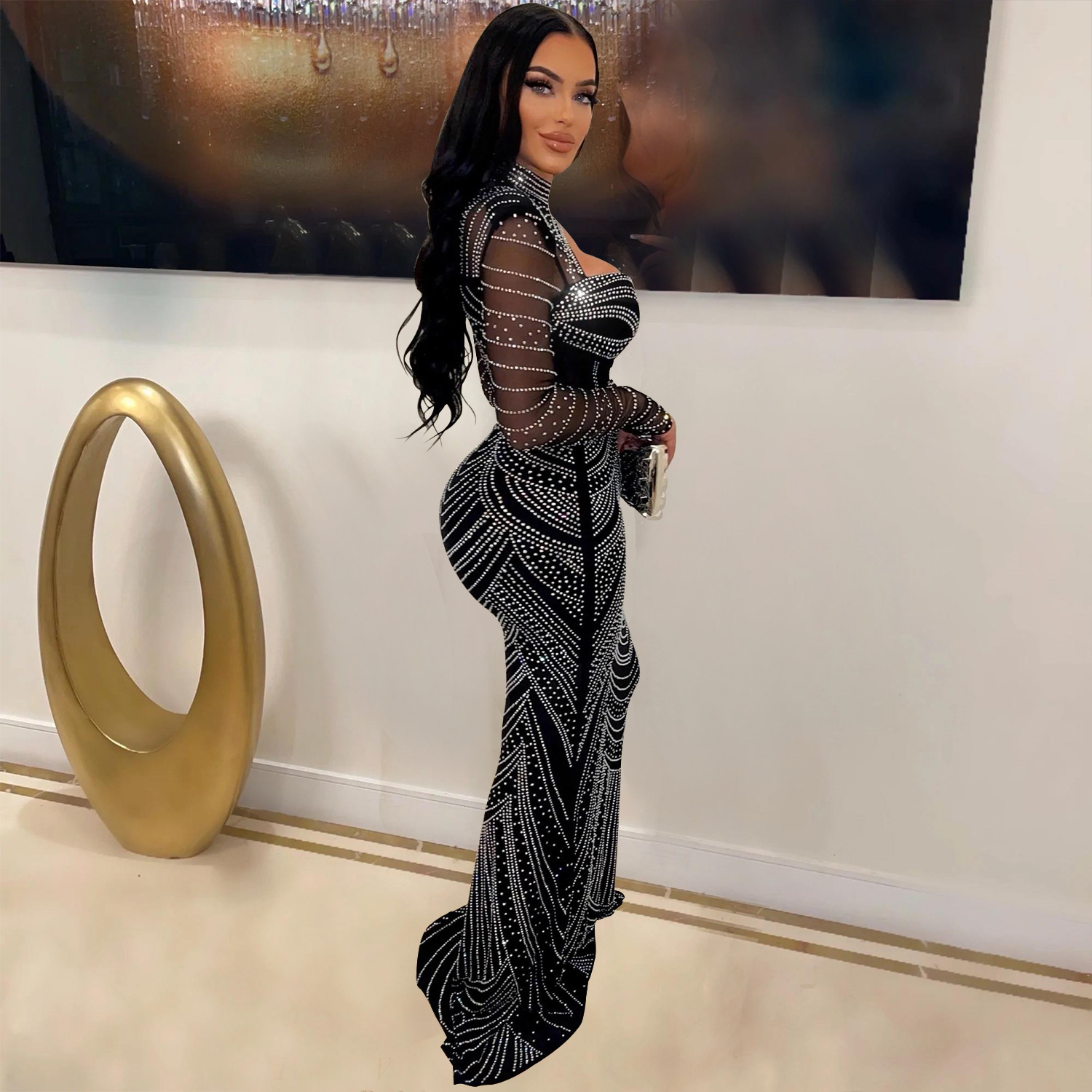 Be the first to review “Solid Color Rhinestone Mesh V-Neck Long Sleeve Dress”