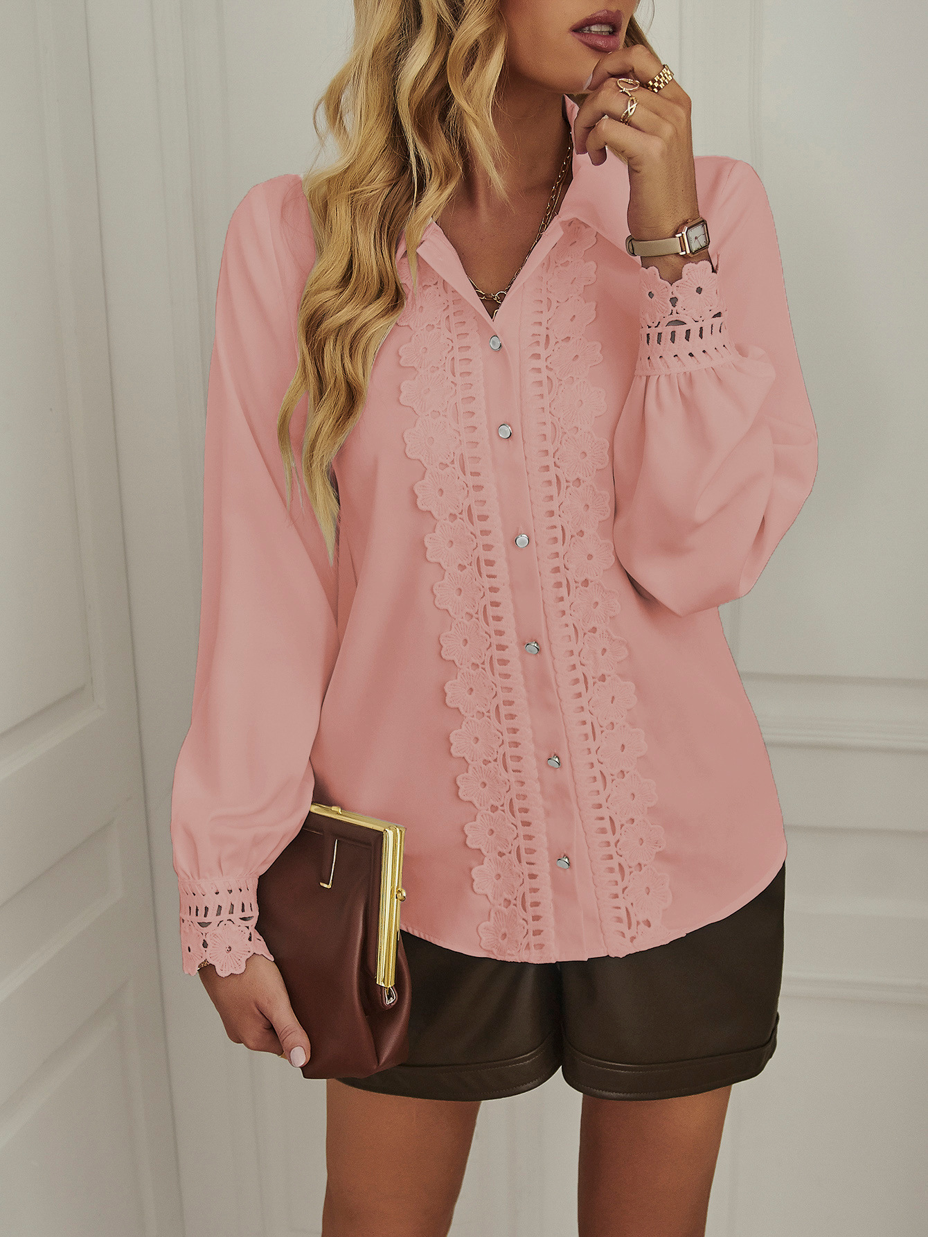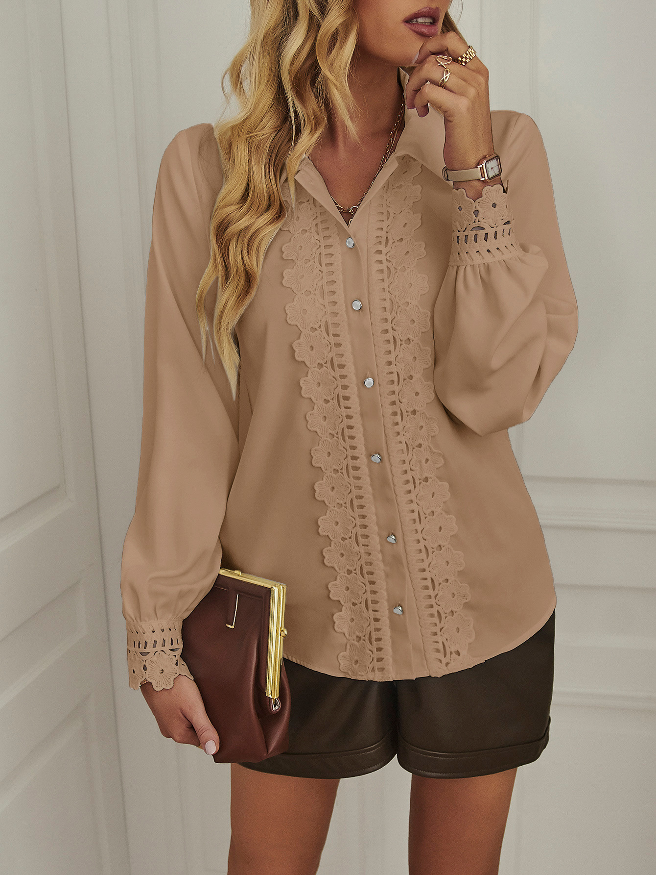 Solid Color Shirt Women Spring Summer Casual Long Sleeved Shirt