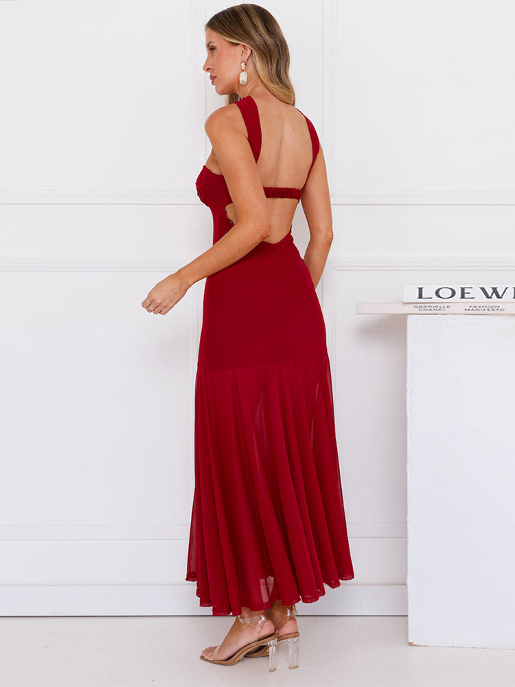 Solid Color Sleeveless Split Mesh Maxi Dress