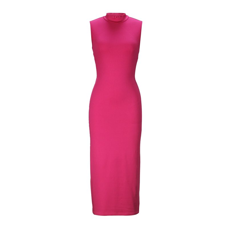 Solid Color Turtleneck Sleeveless Backless Pleated Dress