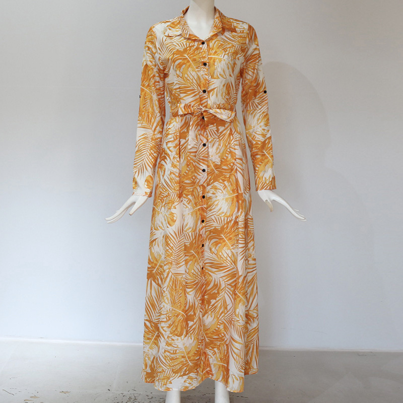 Be the first to review “Spring Autumn Polo Collar Bohemian Printed Single Breasted Midi Dress Long Sleeve Dress”