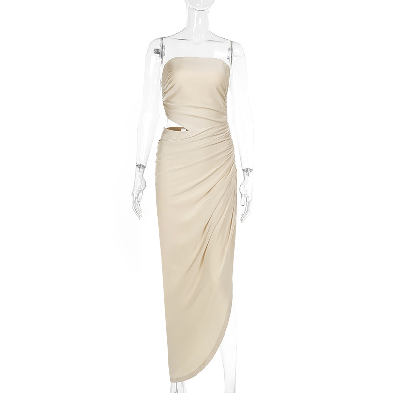 Spring Slim Tube Top Hollow Out Maxi Dress