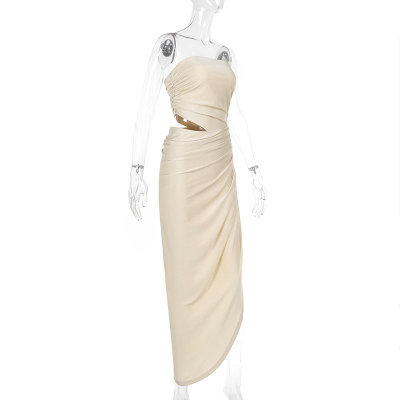 Spring Slim Tube Top Hollow Out Maxi Dress