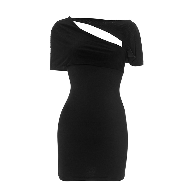 Spring Summer Off-Neck Asymmetric Hollow Out Dress