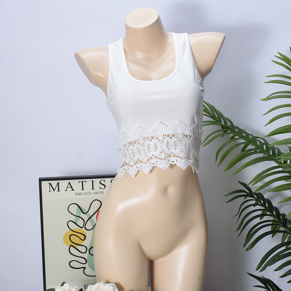 Spring U-Collar Lace Stitching Sexy Cropped Vest
