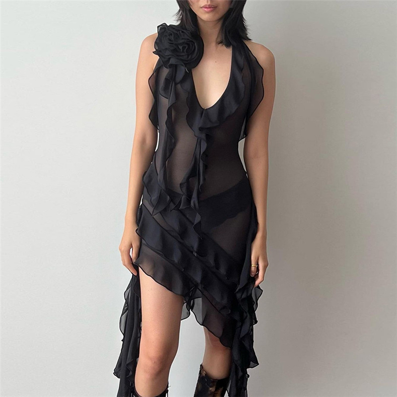 Element: Lace/Tulle/Fishnet,Backless,3D Decoration,Ruffle,Tie