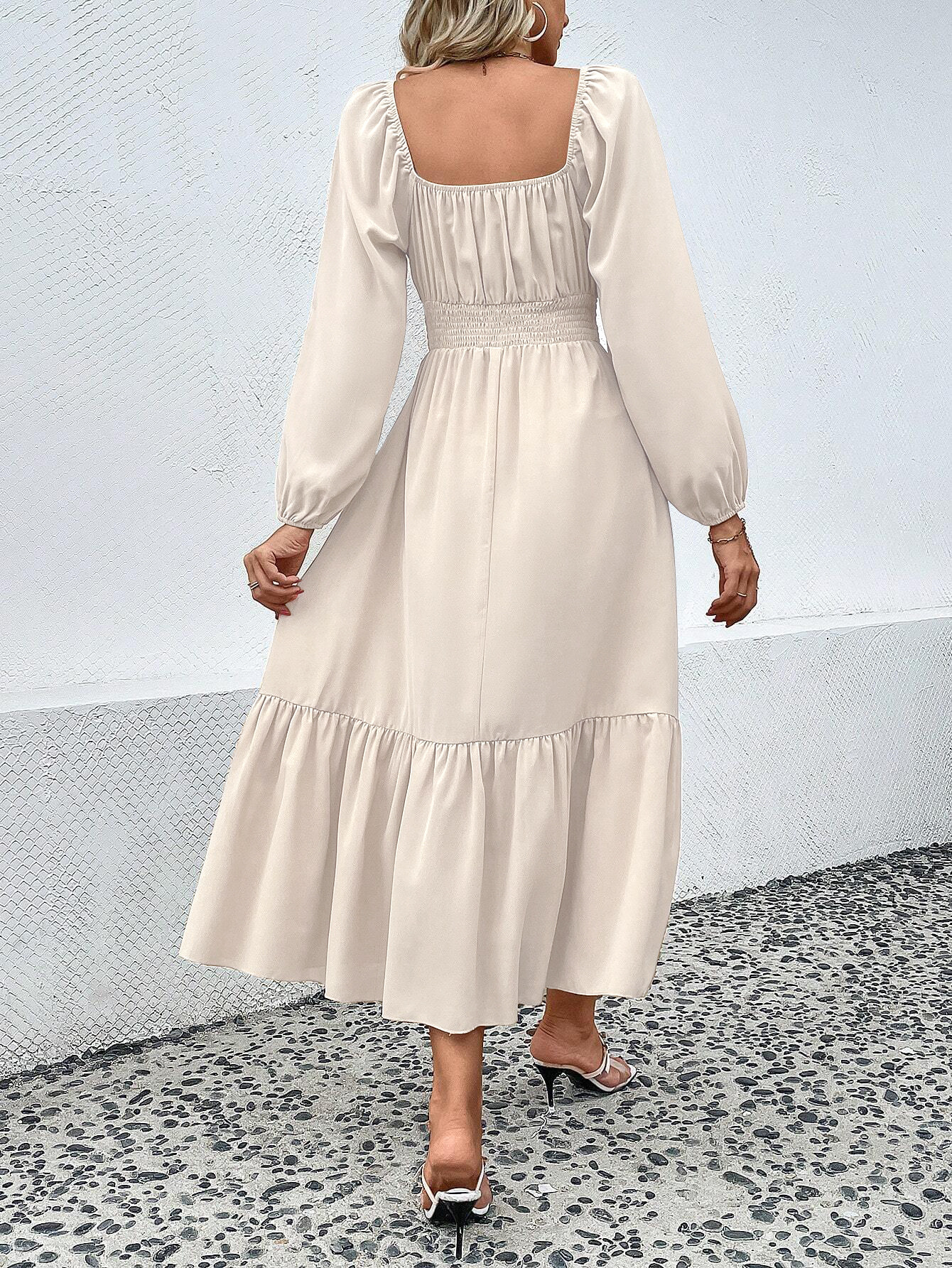 Square Neck Waist-Tight Long Sleeve Maxi Dress