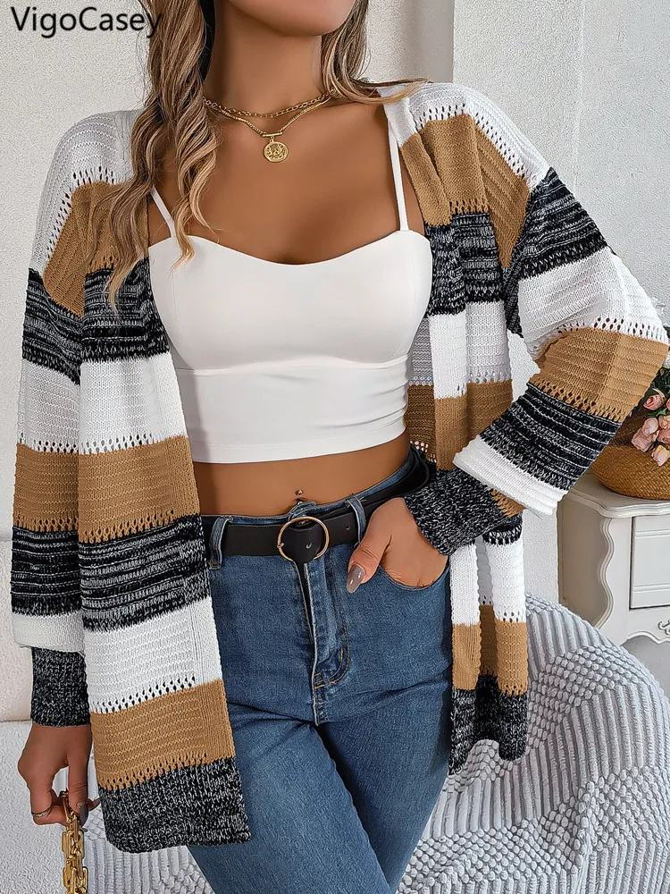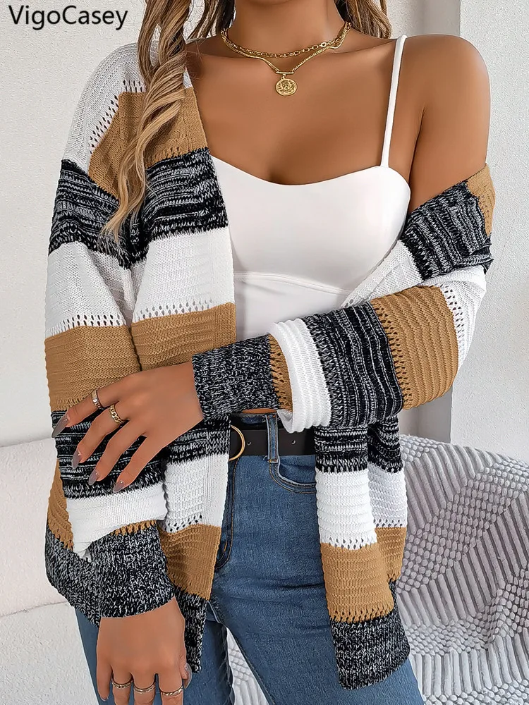 Be the first to review “Striped Knit Cardigan Women Autumn Winter”