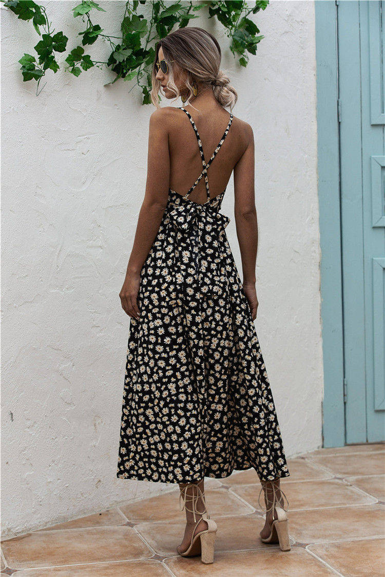 Summer Little Daisy Backless Lace-Up Bow Dress