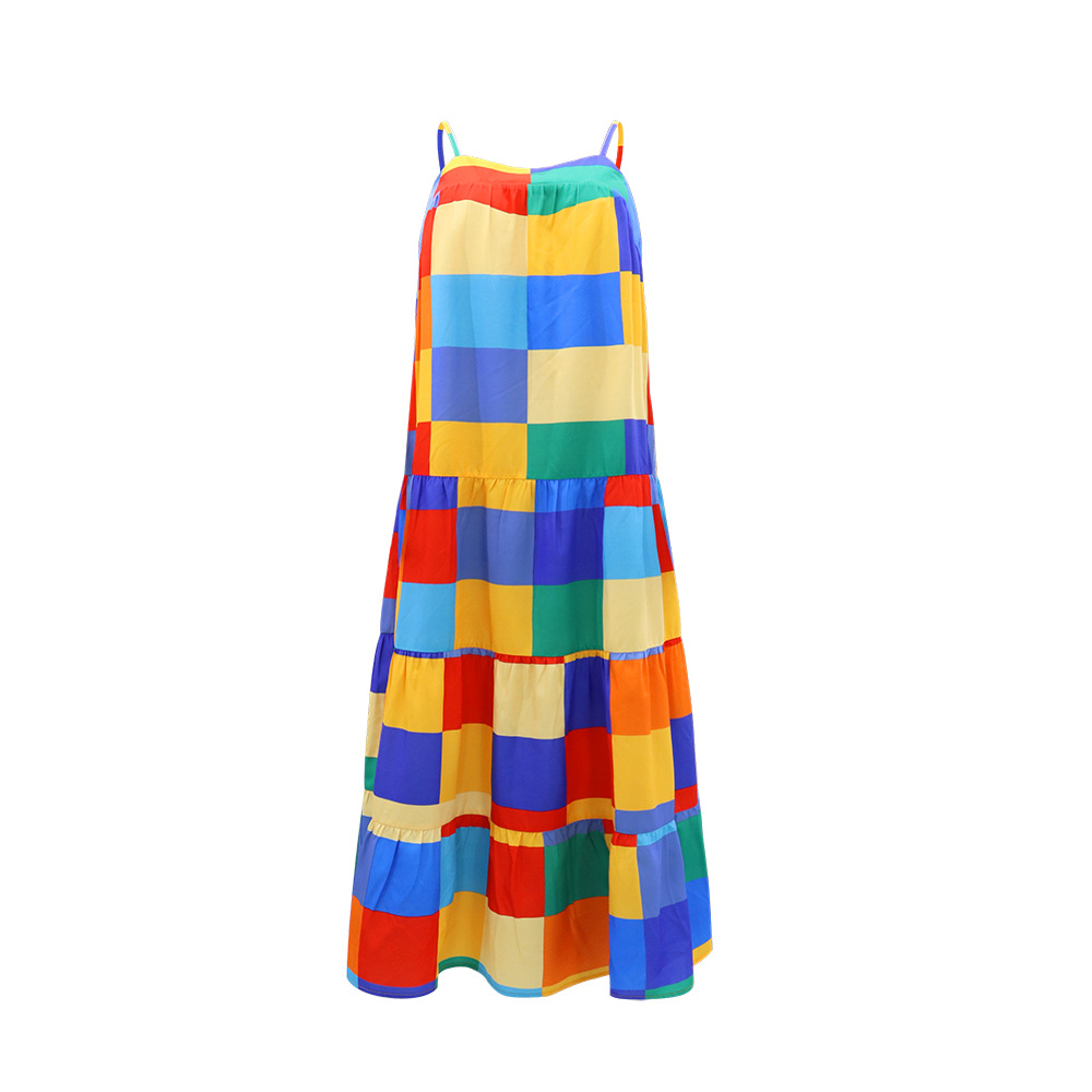 Summer Plaid Mosaic Suspender Maxi Dress for Women