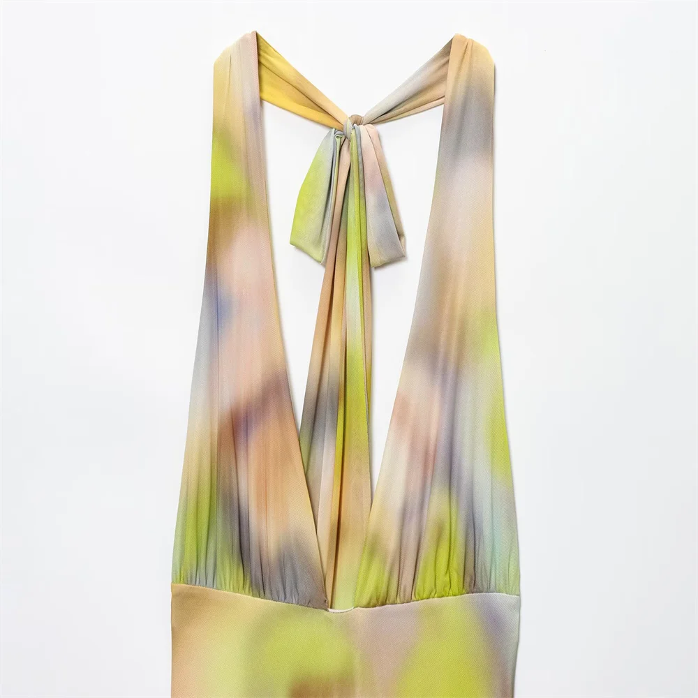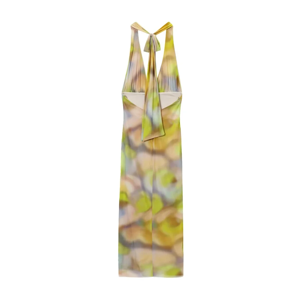 Summer Printed Backless Halter Midi Dress