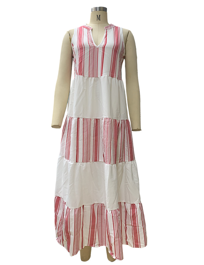Summer Striped V-Neck Sleeveless Printed Midi Dress