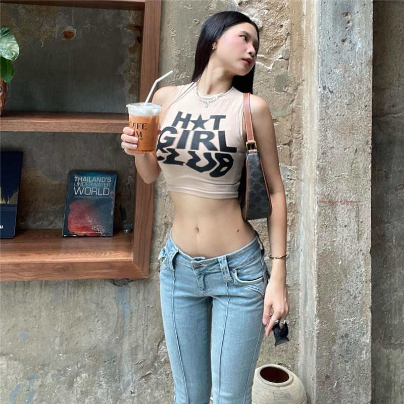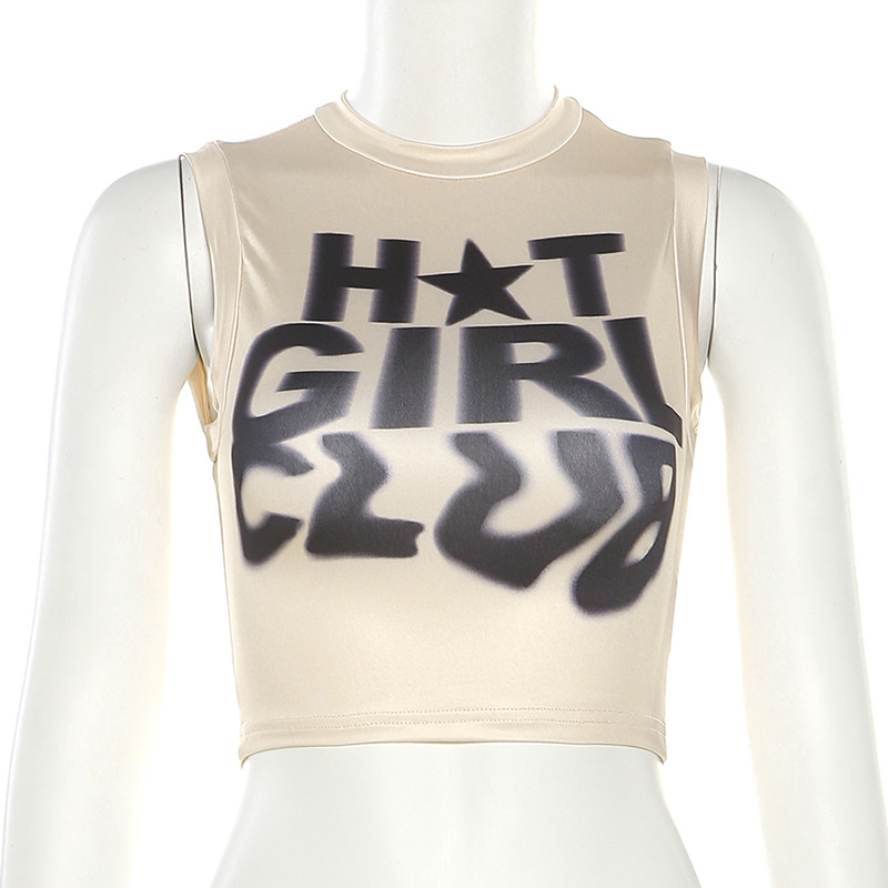 Spring Summer Small Vest Women Street Sexy Round Neck Sleeveless Short Cropped Top Women