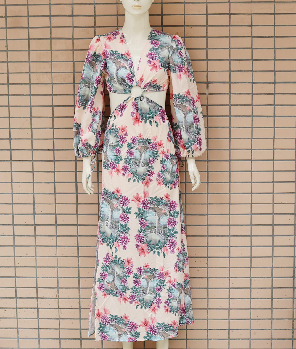 Summer Women’s Printed Long Sleeve Cutout Dress