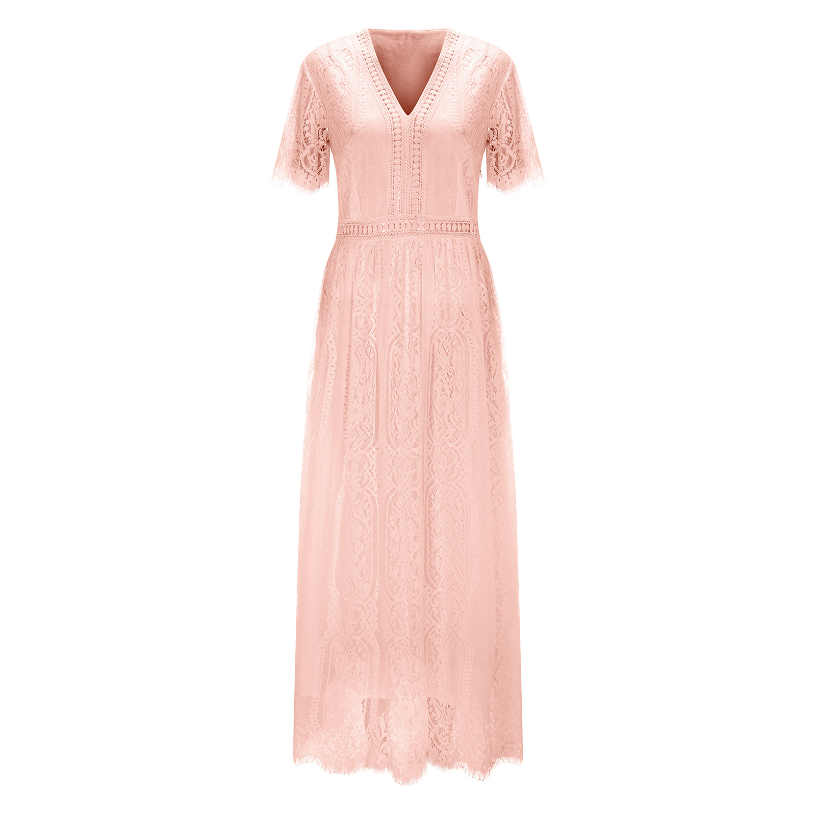 Summer Women’s V-Neck Lace Cutout Maxi Dress