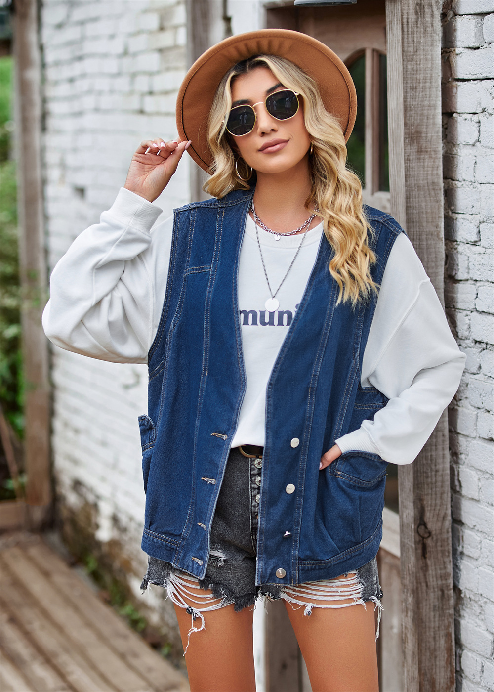 Denim Waistcoat Vest Women Summer Trendy Denim Sleeveless Vest