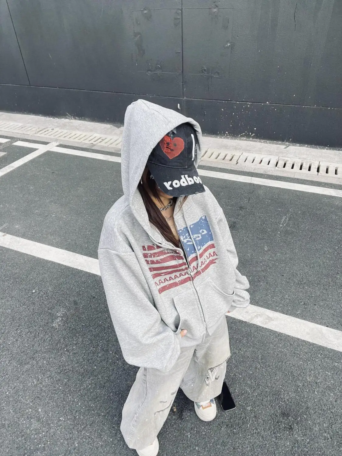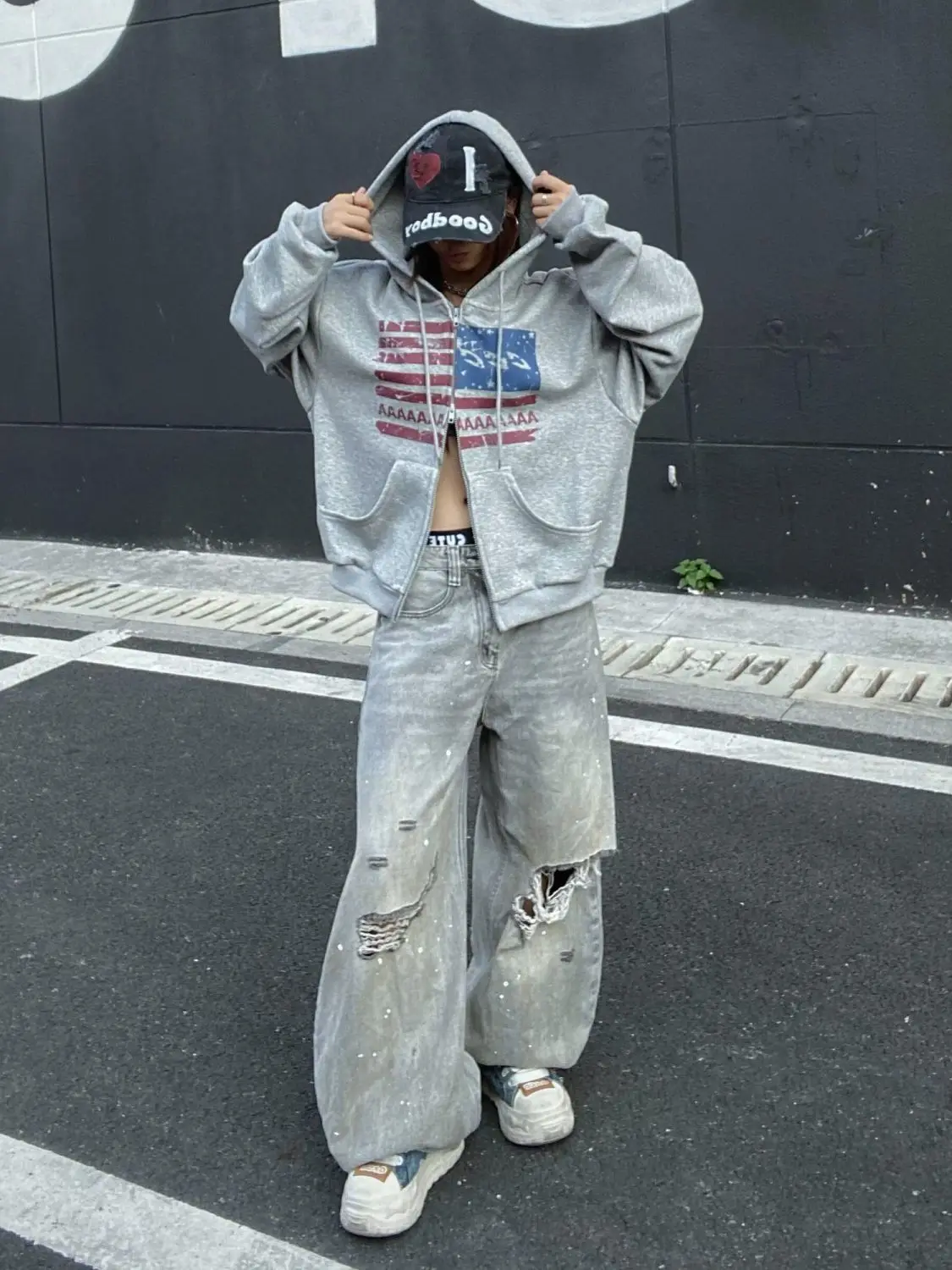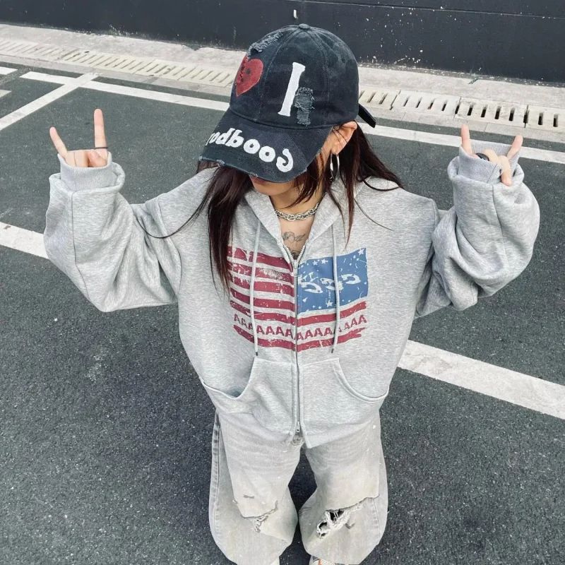 American Retro Furry Slim Fit Zip-Up Hoodie