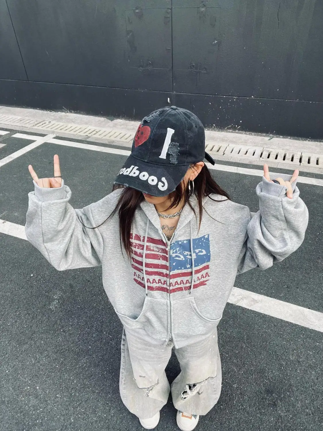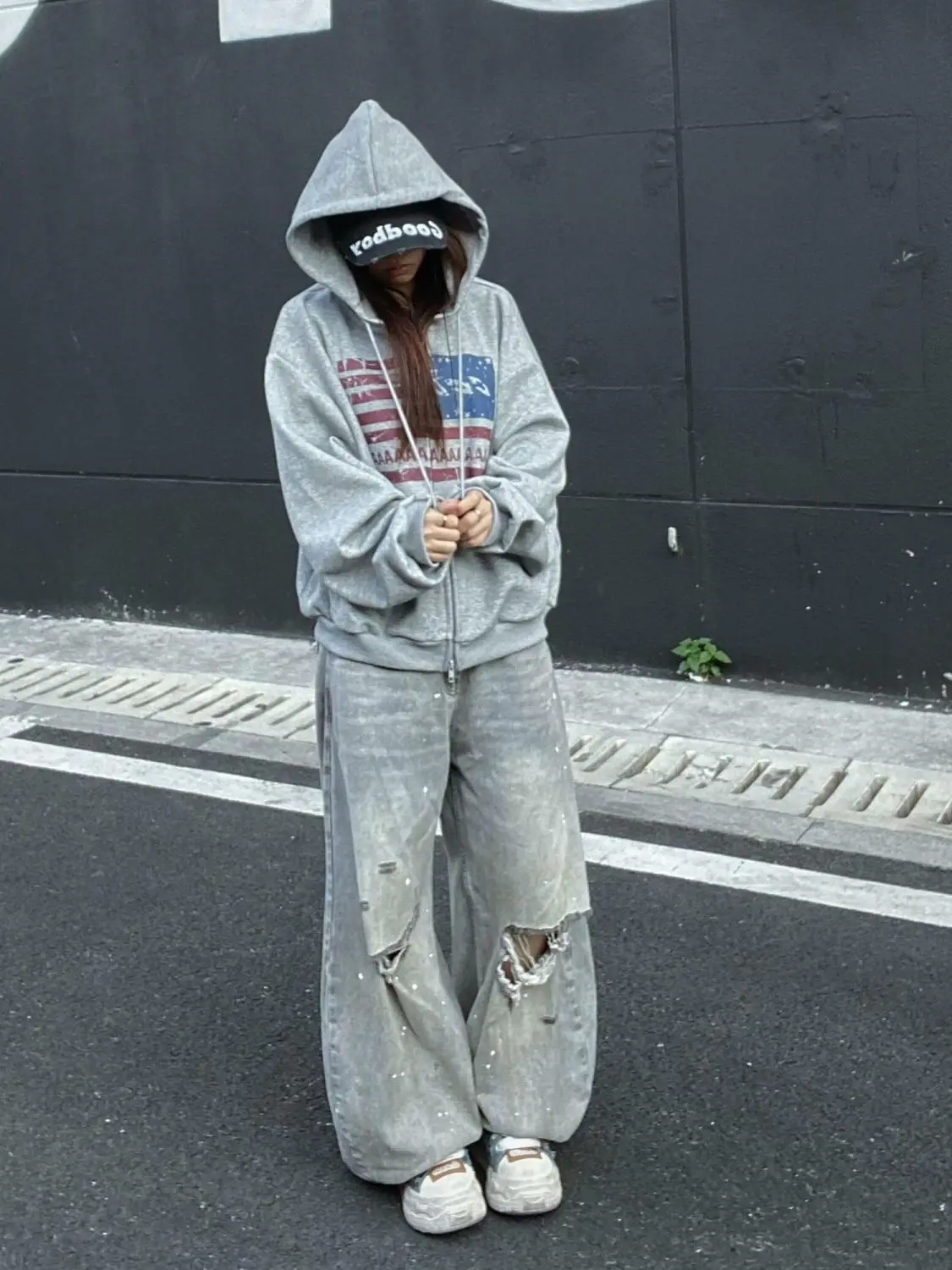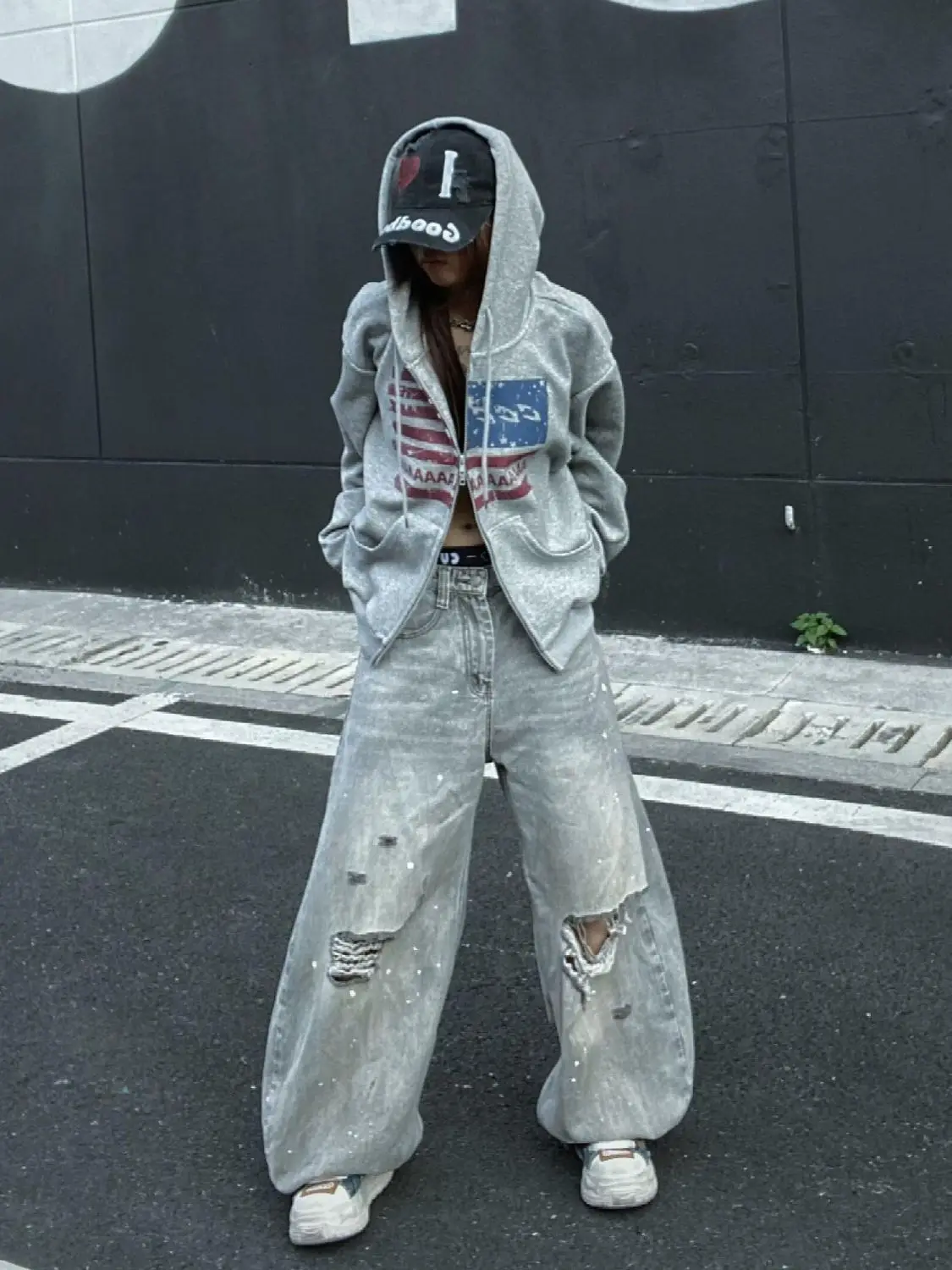 American Retro Furry Slim Fit Zip-Up Hoodie