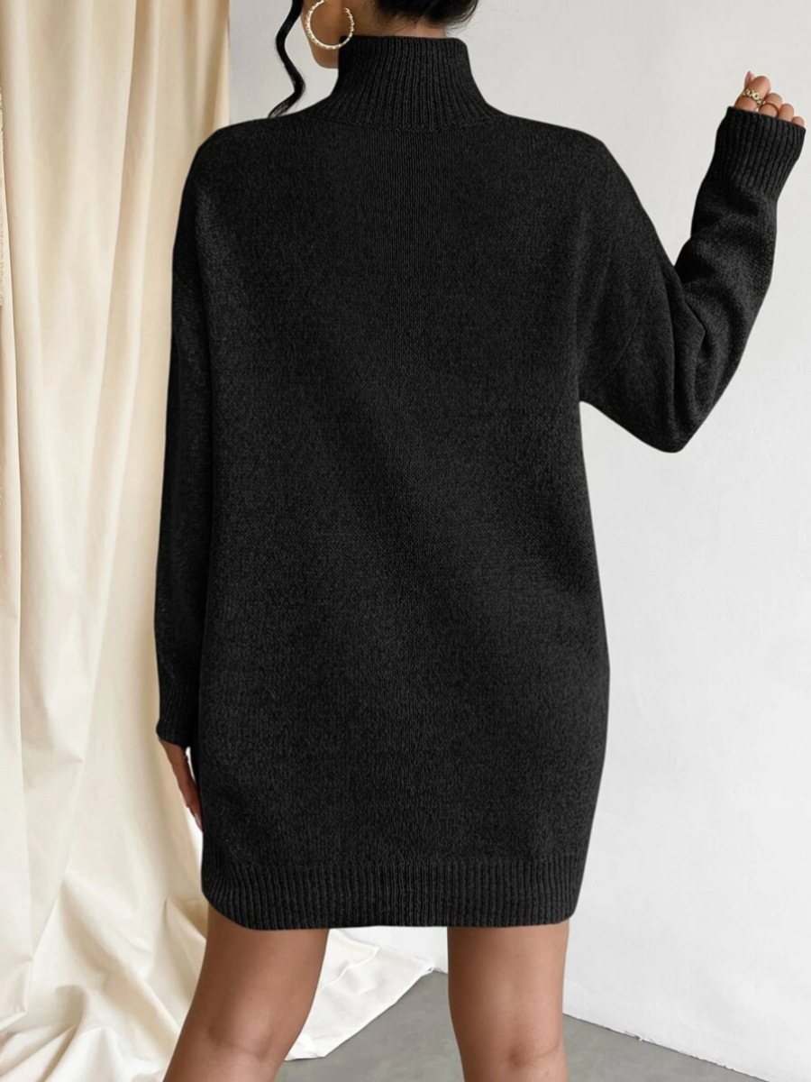 Be the first to review “Turtleneck Knitting Dress Solid Color Simple Pullover Sweater Midi Dress”