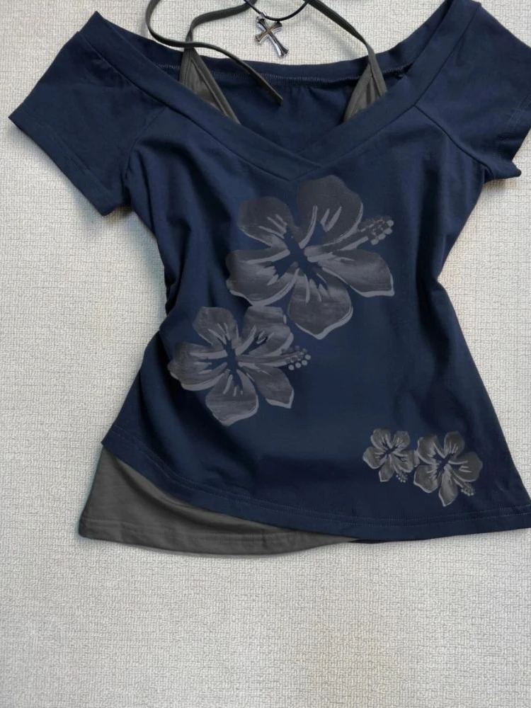 Vintage Harajuku Fake Two-Piece Halter T-Shirt