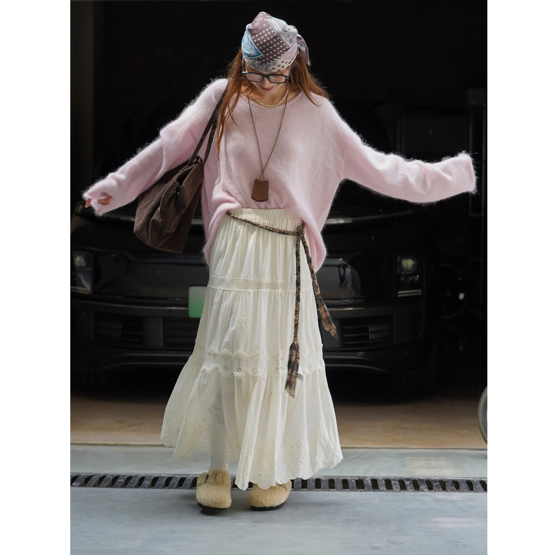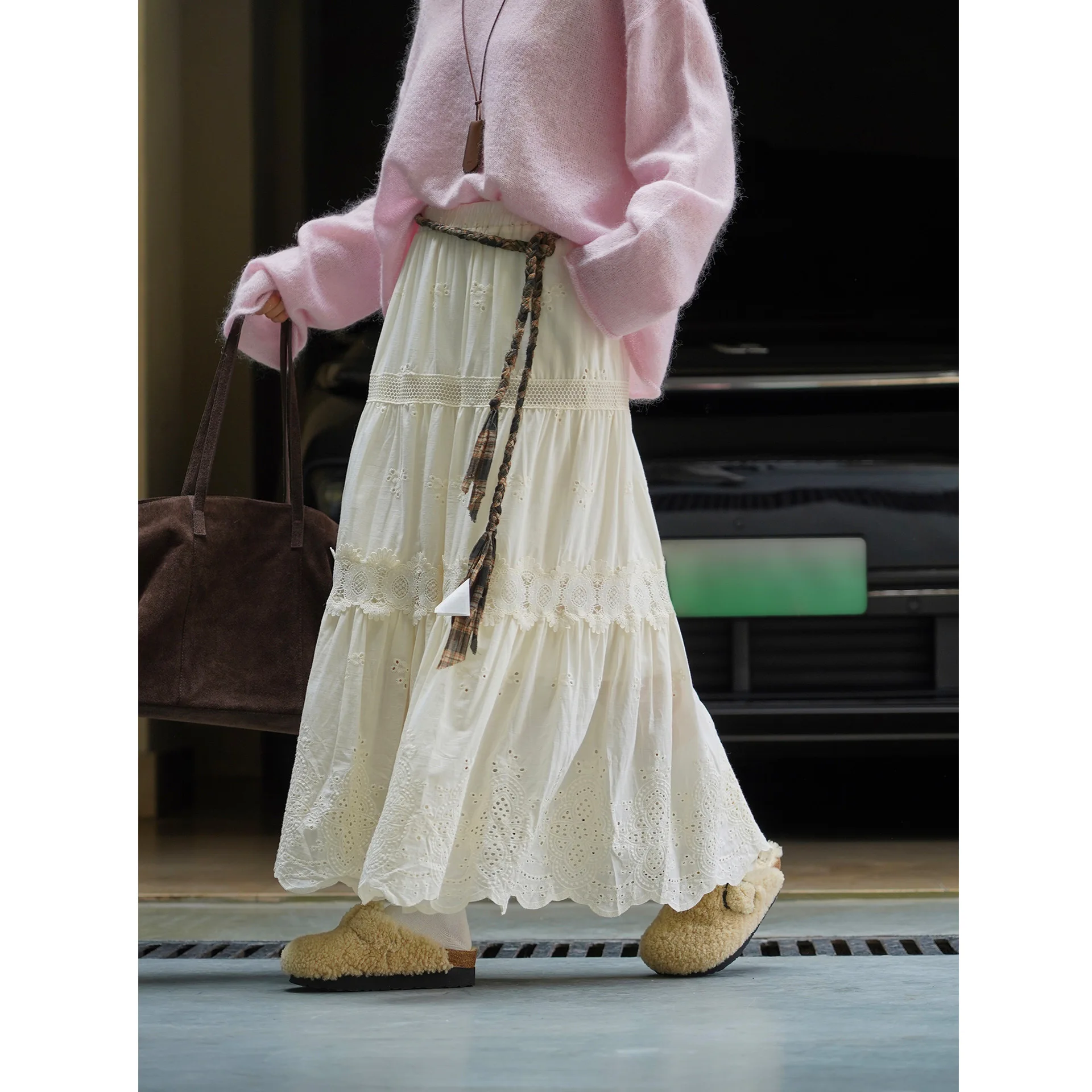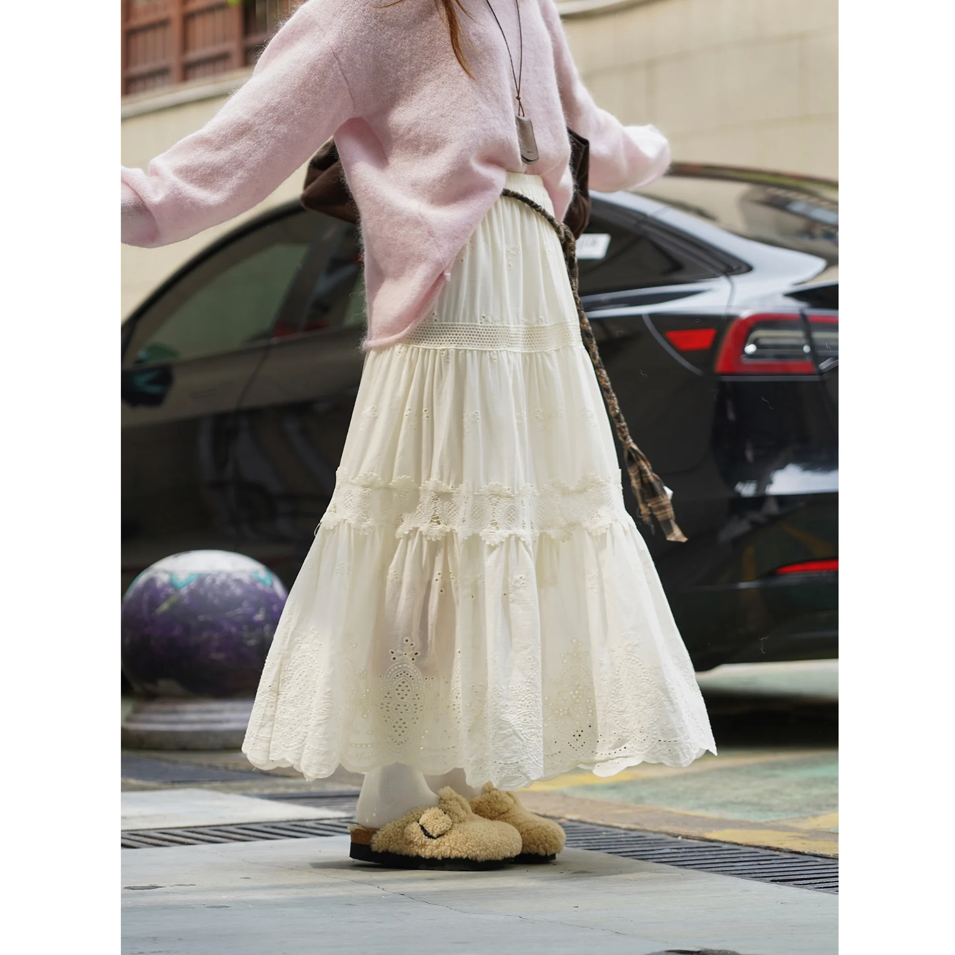 White Boho Floral A-Line Maxi Skirt