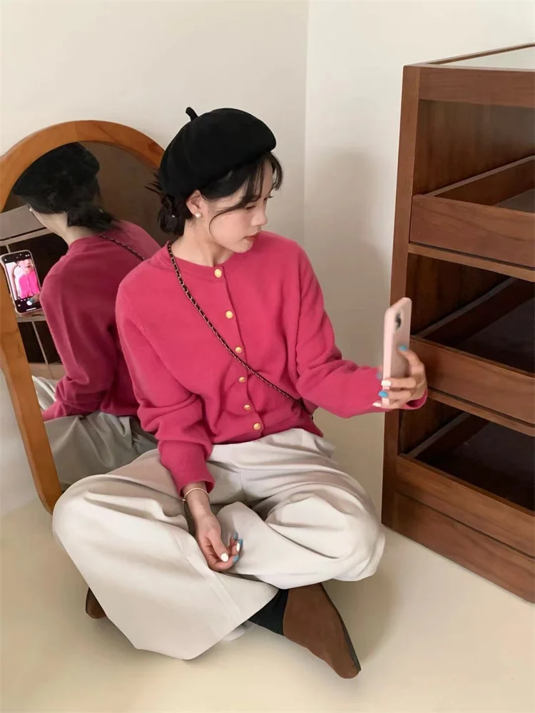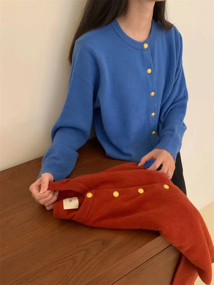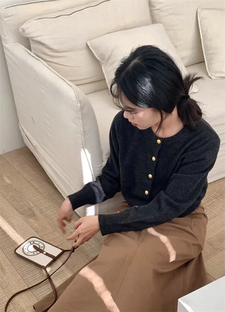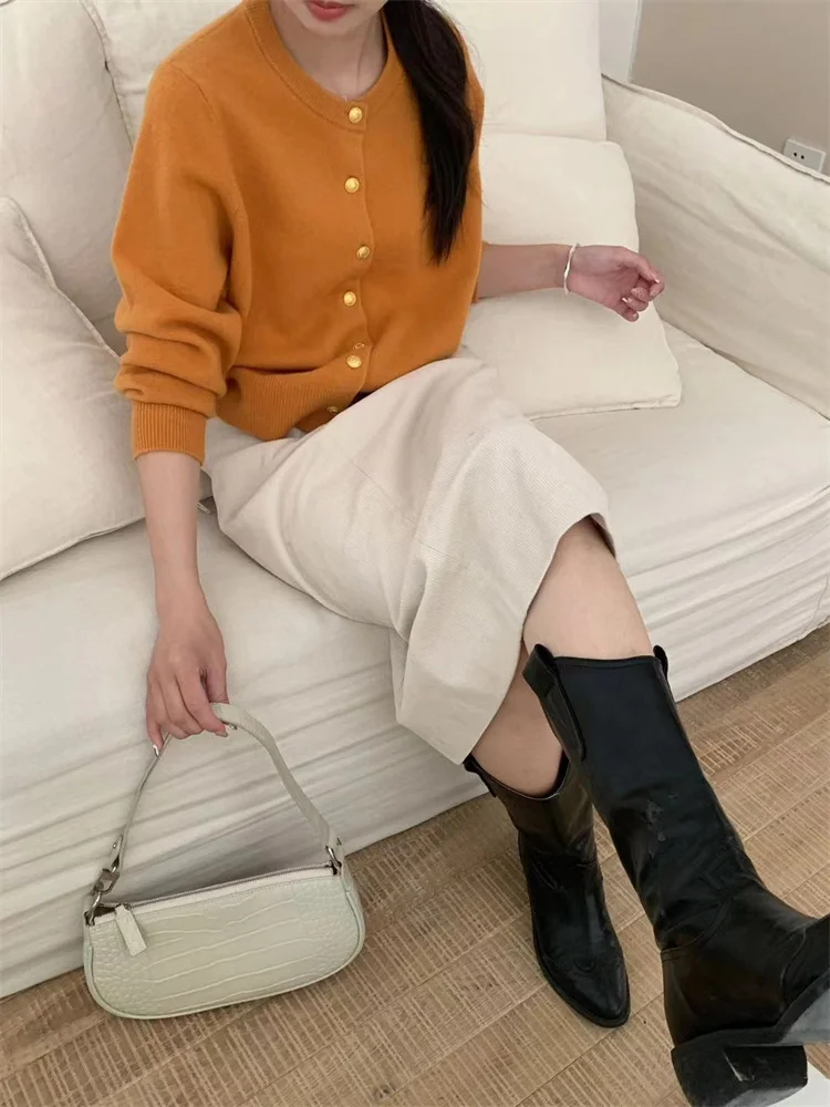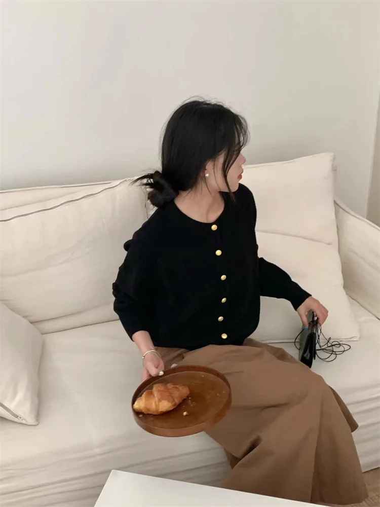 White Knit Cardigan with Gold Buttons