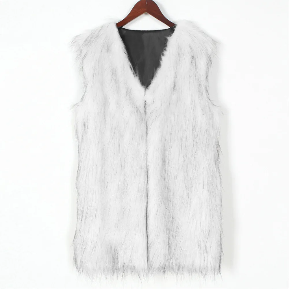 White V Neck Faux Fur Vest Women
