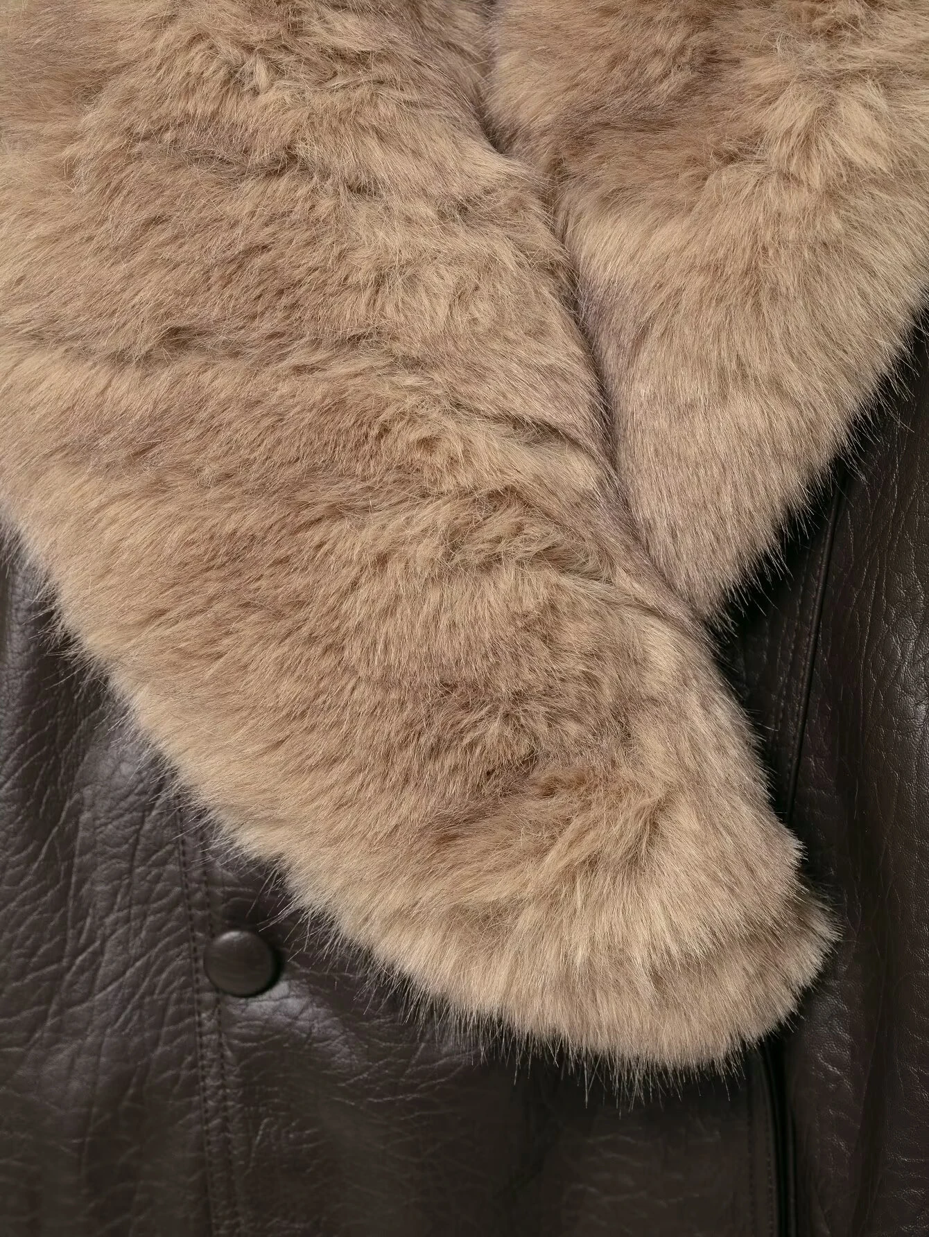 Winter Faux Leather Jacket with Detachable Fur Collar