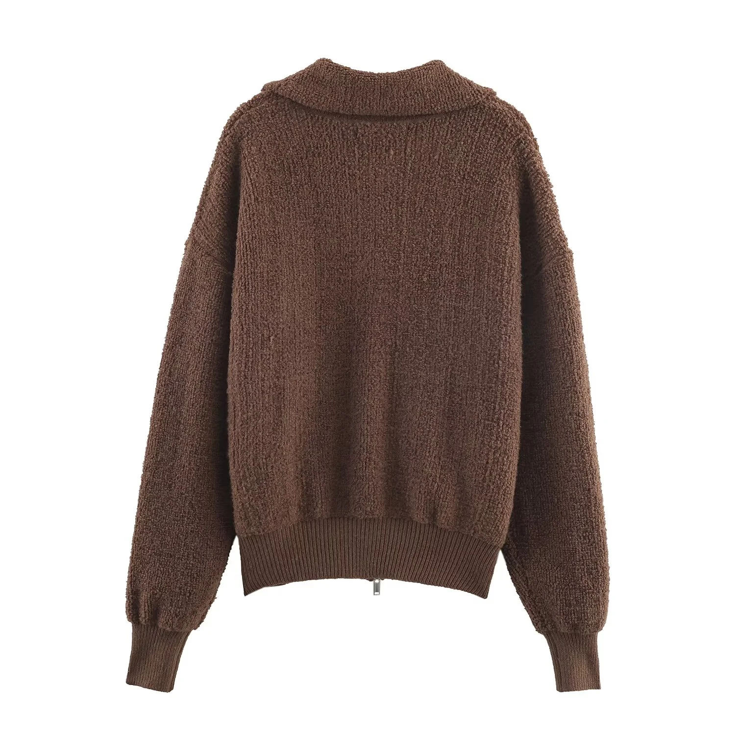 Winter Loose Collar Zipper Woolen Pilot Jacket