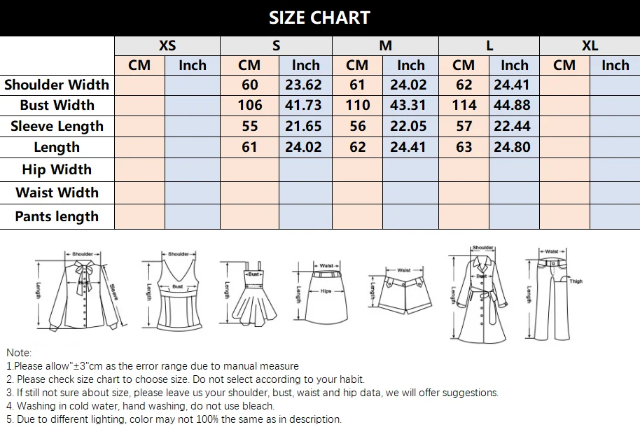 US Size Bust (cm) Shoulder (cm) Sleeve Length (cm)