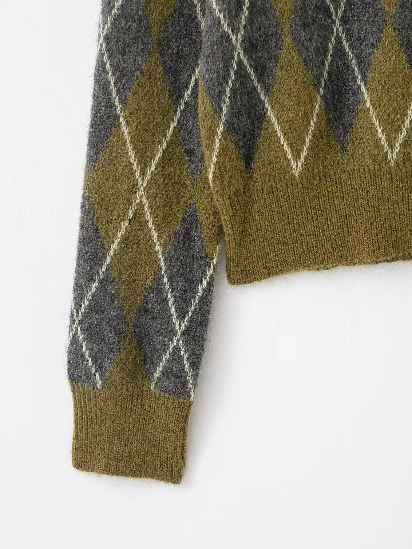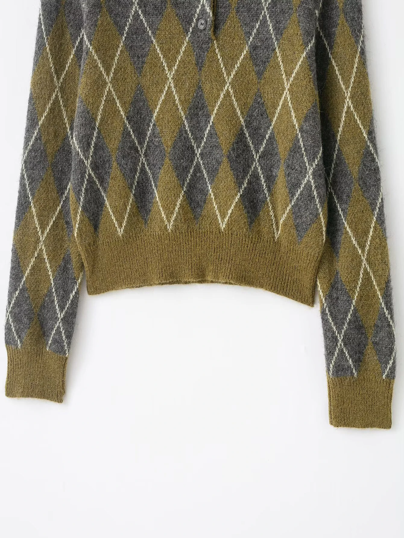 Winter New Diamond Knit Long-Sleeve Polo Top