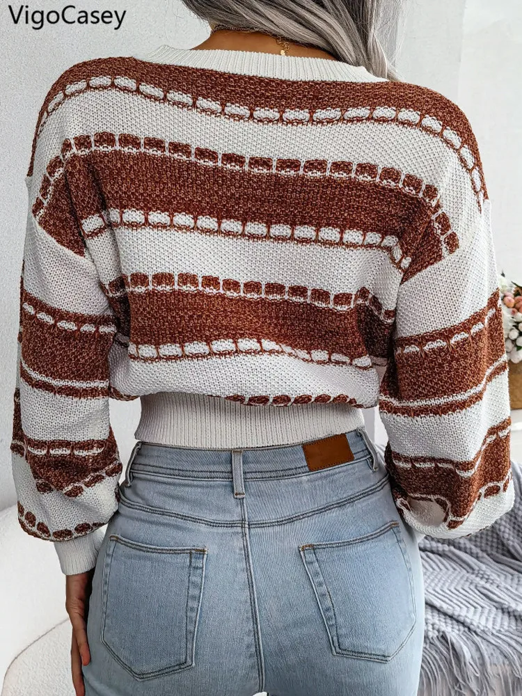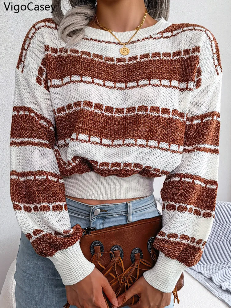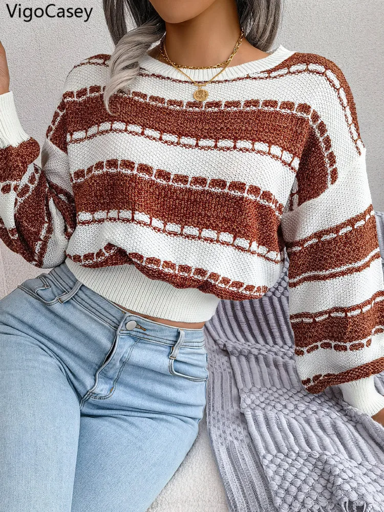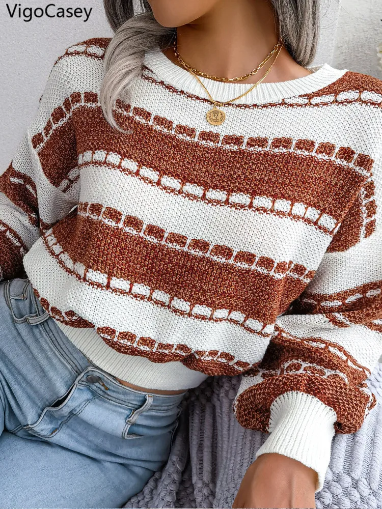 Winter Striped O Neck Knit Sweater Women Casual Loose Pullover