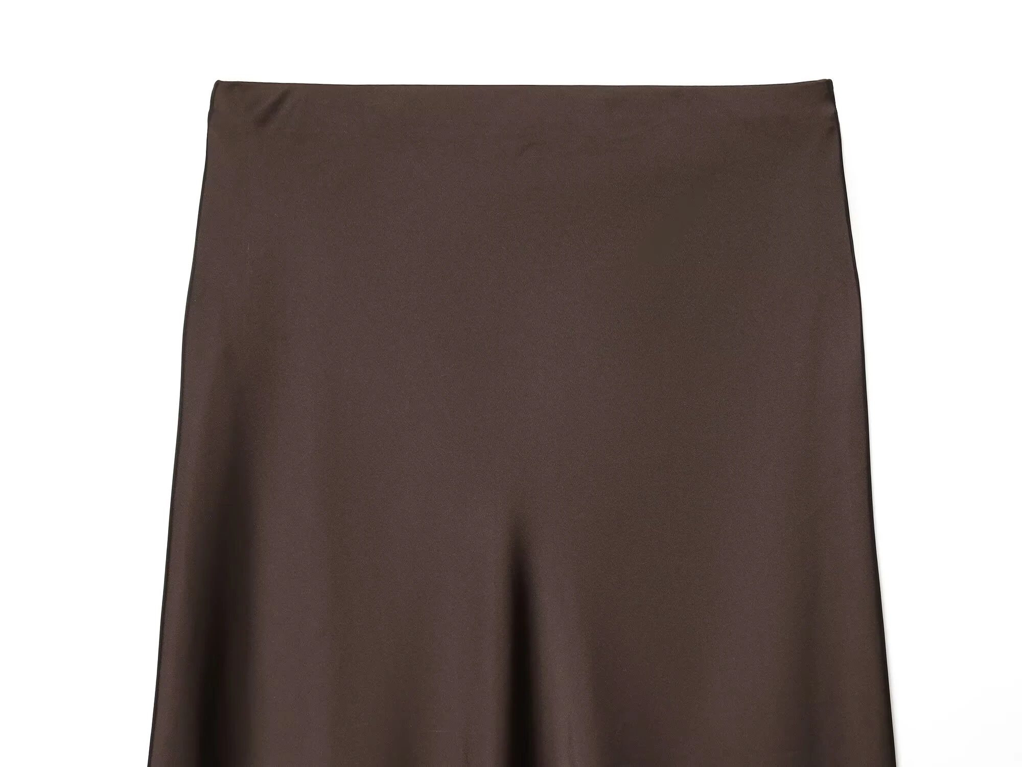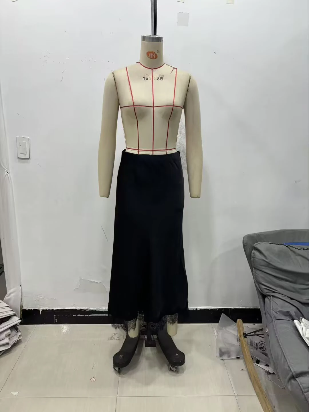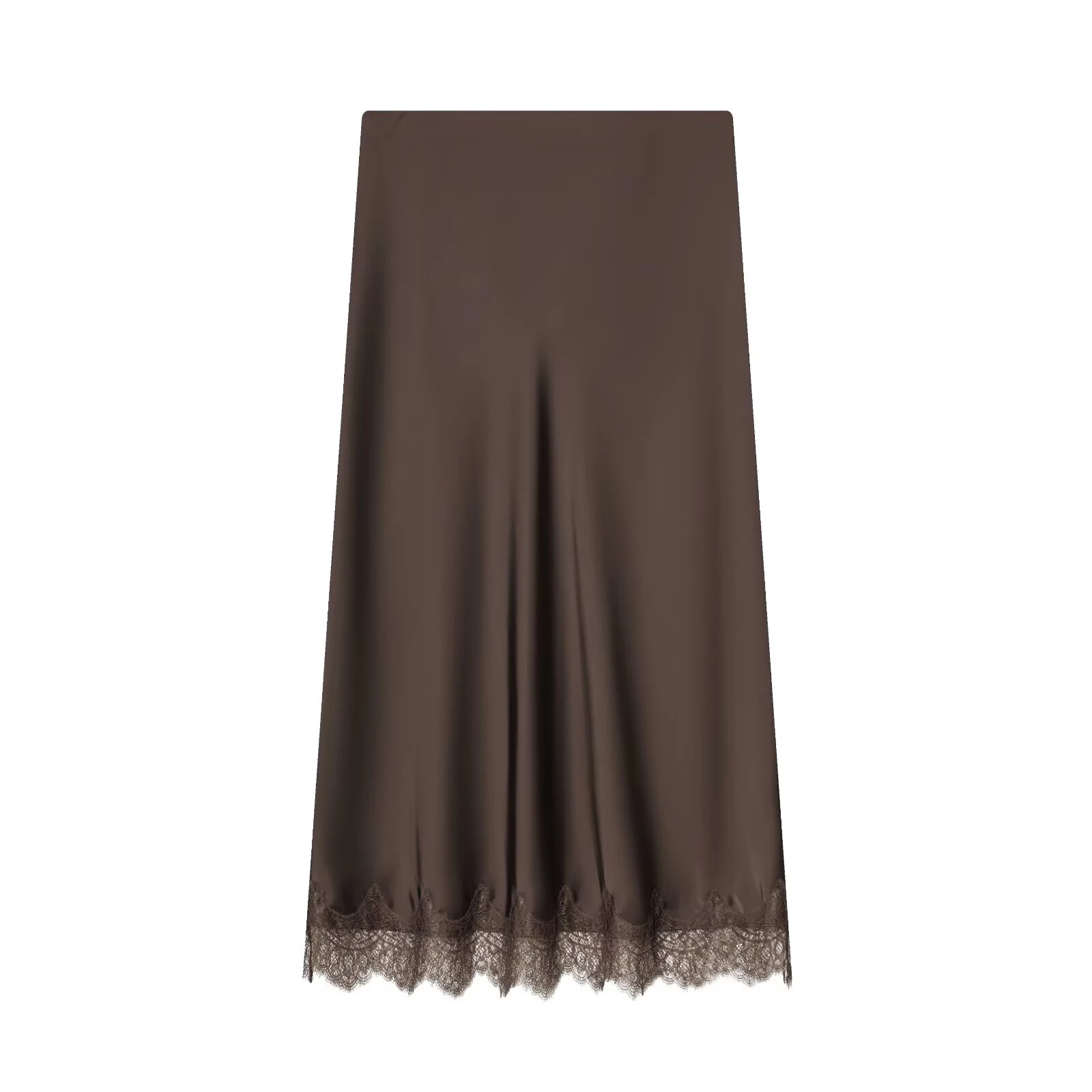 Winter Women’s High-Waist Lace Trim Silk Midi Skirt