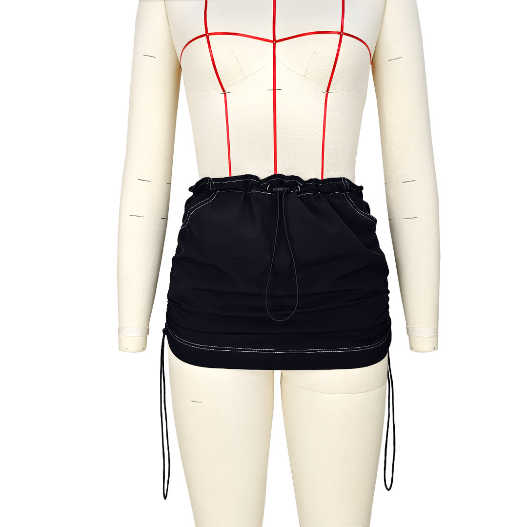 Women Clothing Summer Solid Color Casual Burnt Floral Tied Slim Fit Sheath Ultra Short Skirt for Women