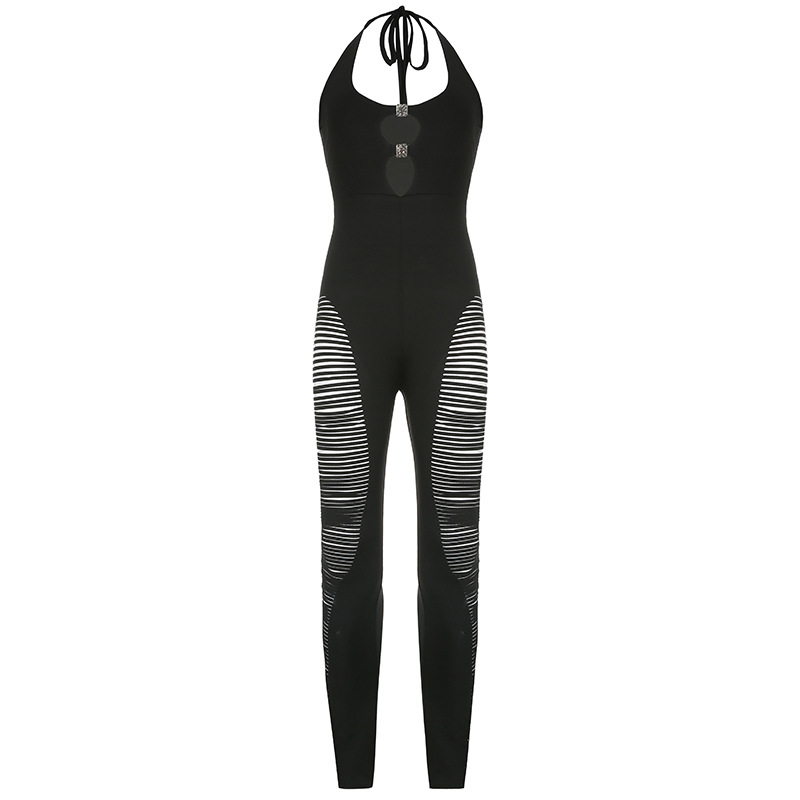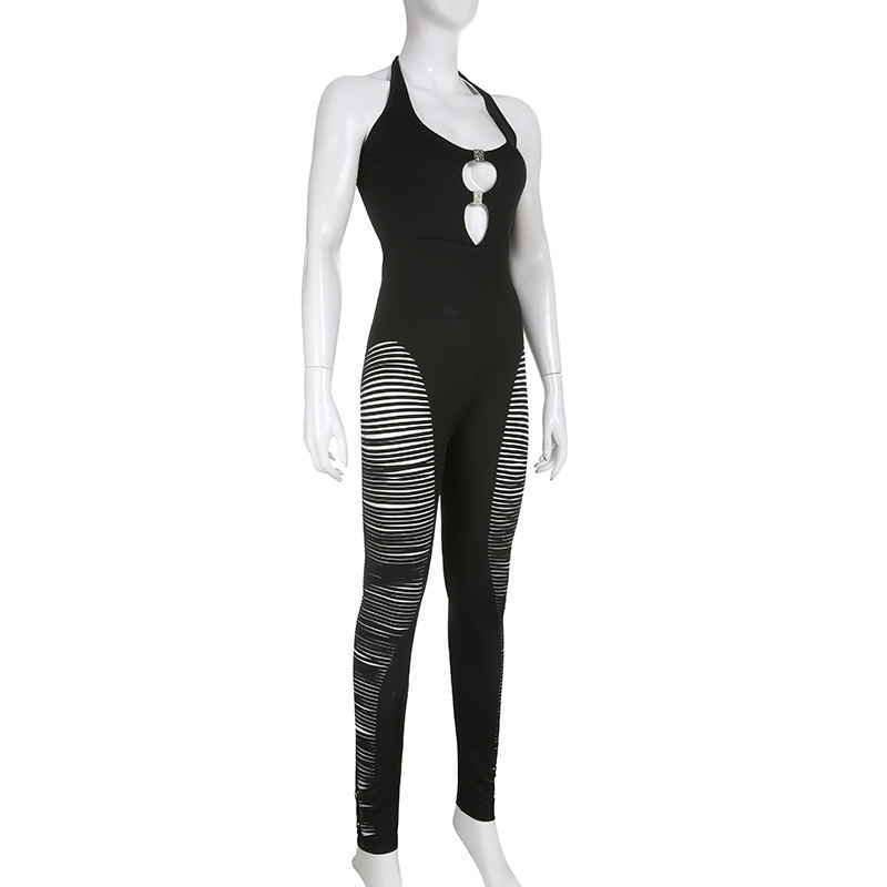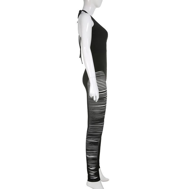 Summer Printing Lace up Crew Neck Backless Women Short Sleeve Feet Jumpsuit with Pockets