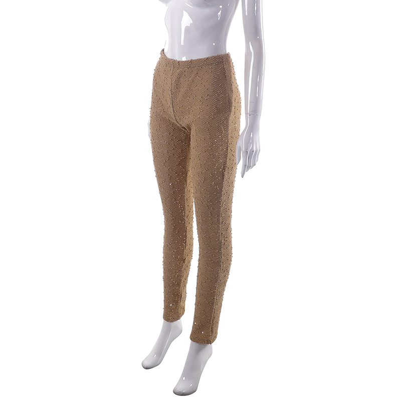 Women Clothing Faux Leather Black White Contrast Color round Abstract Gothic Casual Pants Tight Trousers Winter